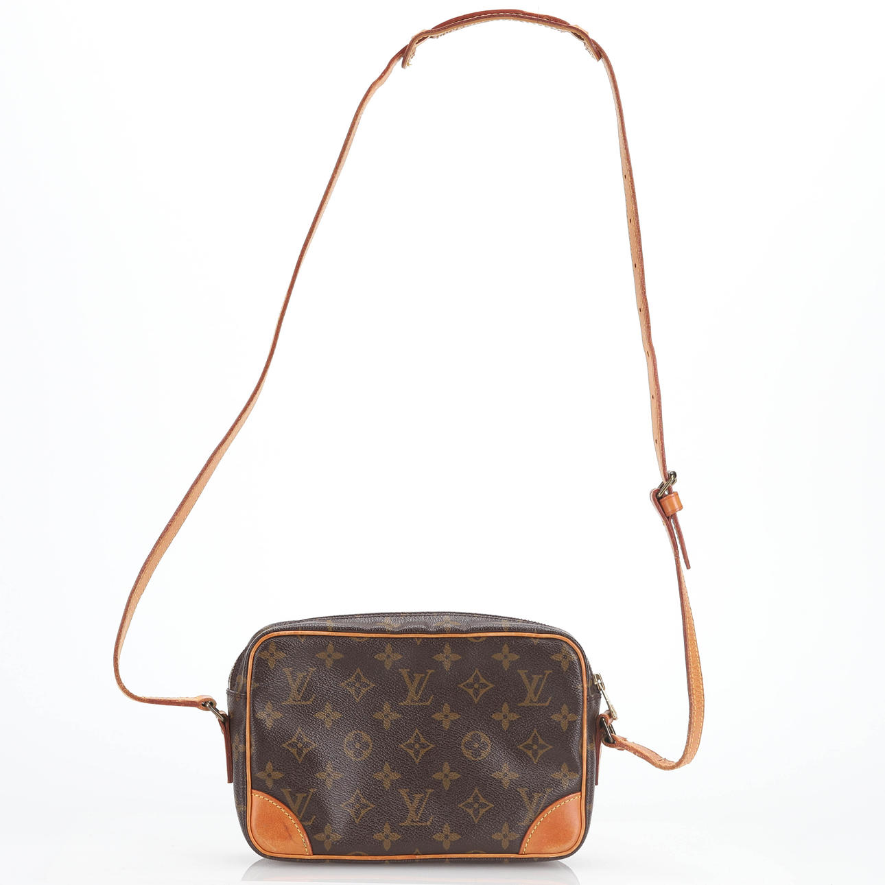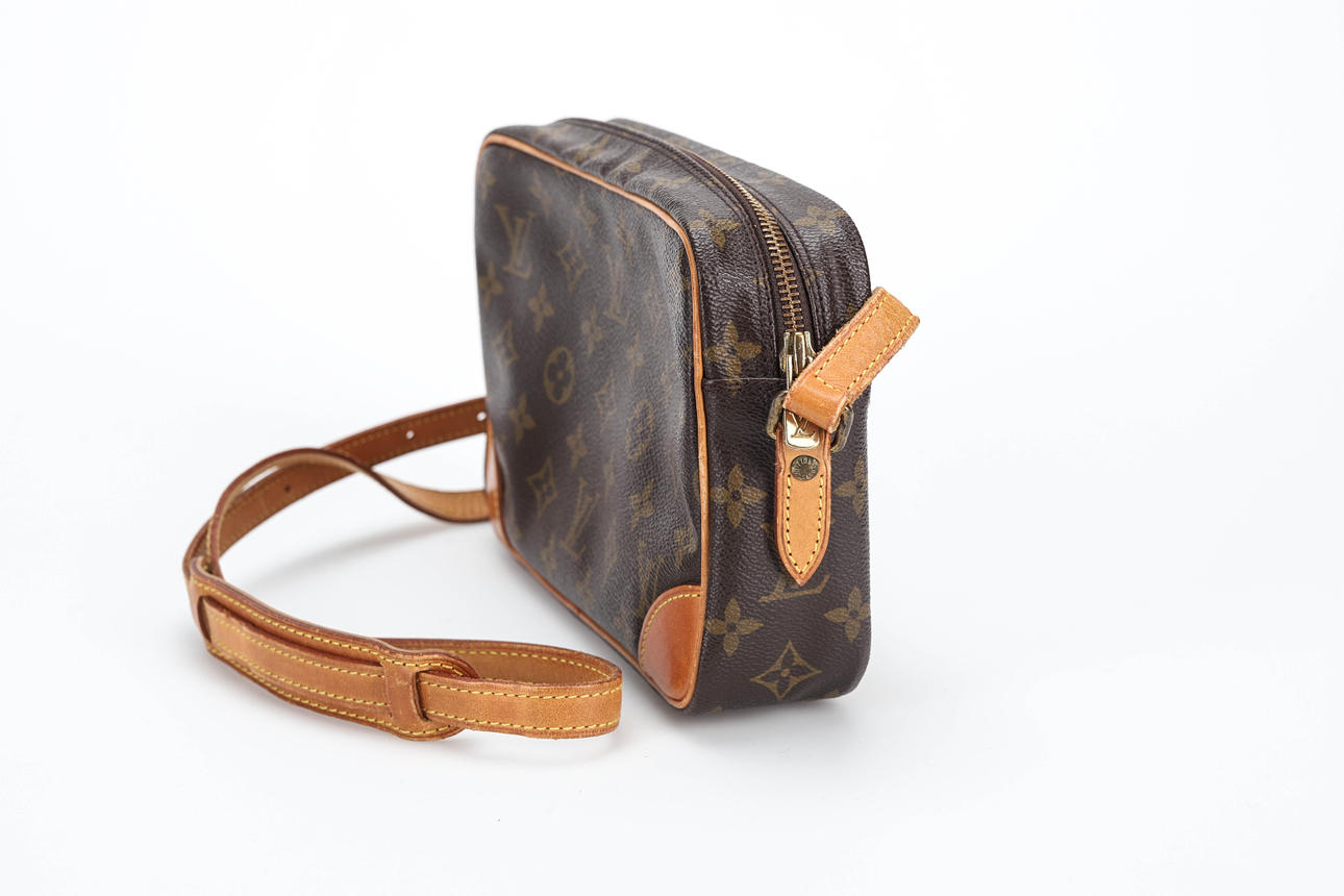Monogramlærred med læderdetaljer, mærket LOUIS VUITTON PARIS, Made in France, mål ca. 23x15x6 cm. En udvendig lynlåslomme, en indvendig lynlåslomme.
