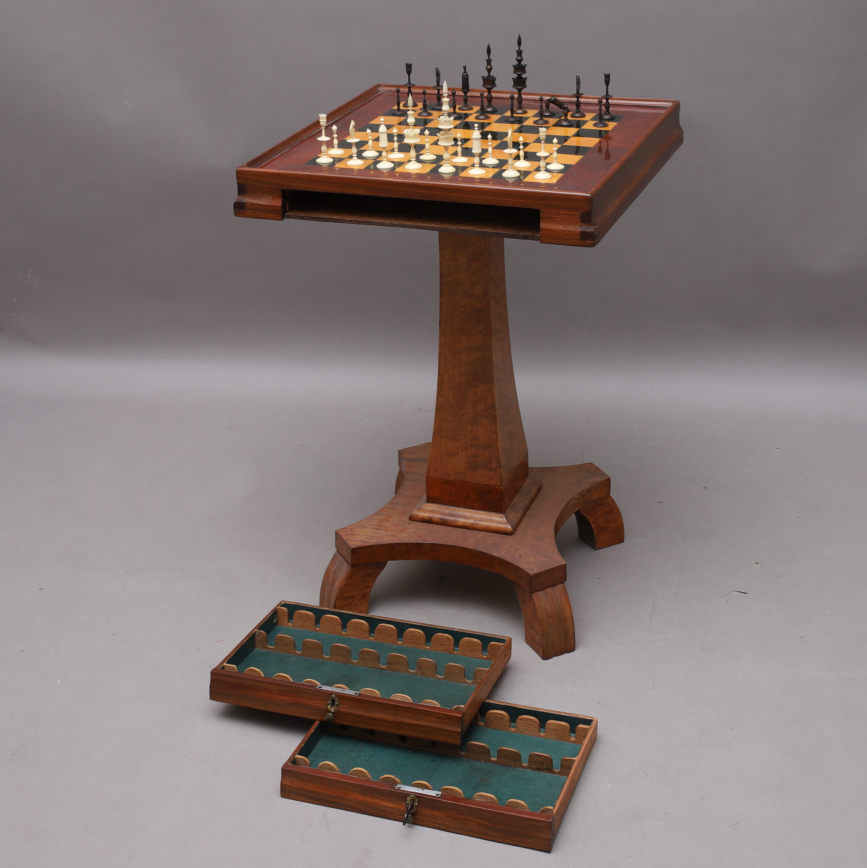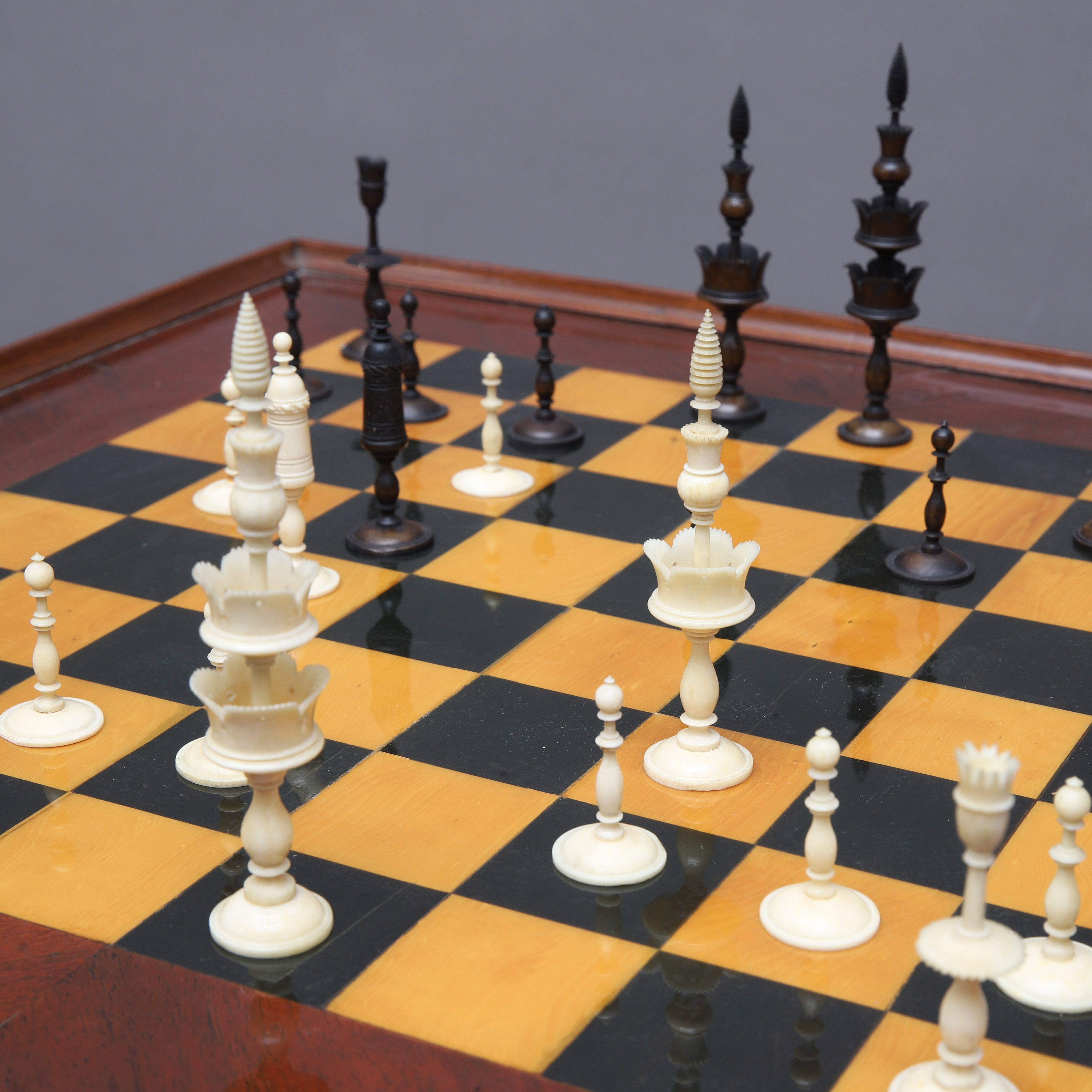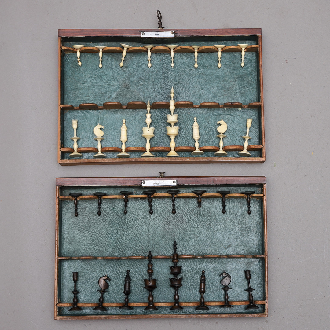 1984239. SKAKBORD med brikker, træ og ben.