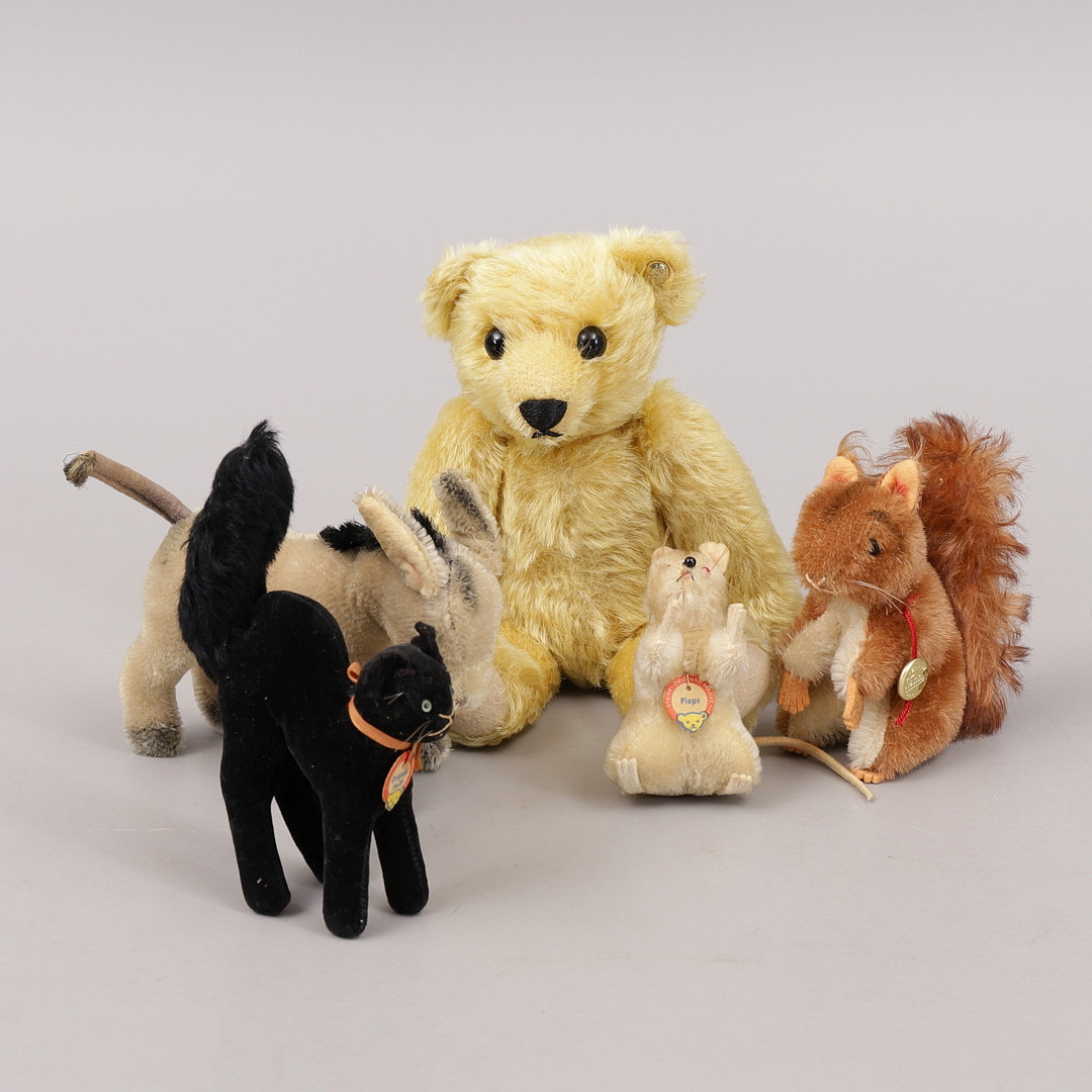 1989704. BLØDE DYR, 5 stk, Steiff.