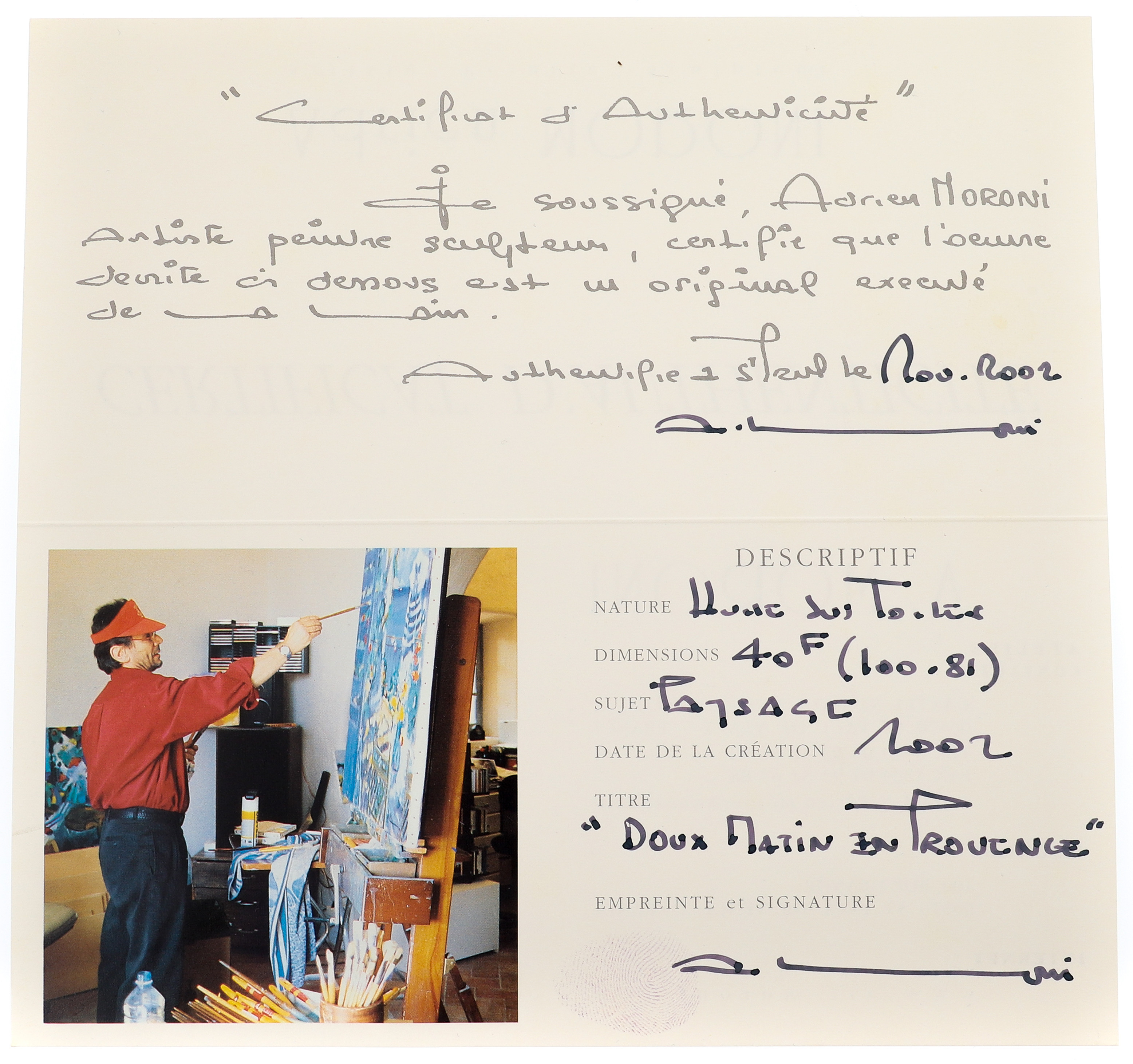 1990483. ADRIEN MORONI B.1943. DOUX MATIN EN PROVENCE.