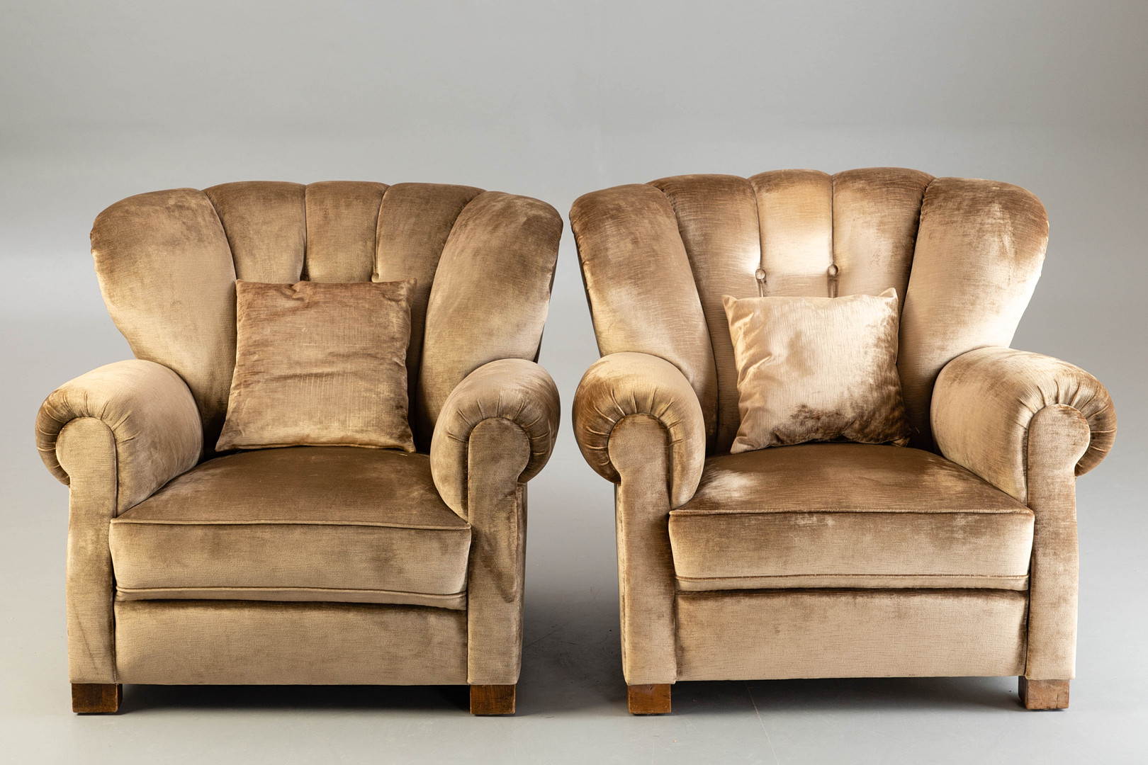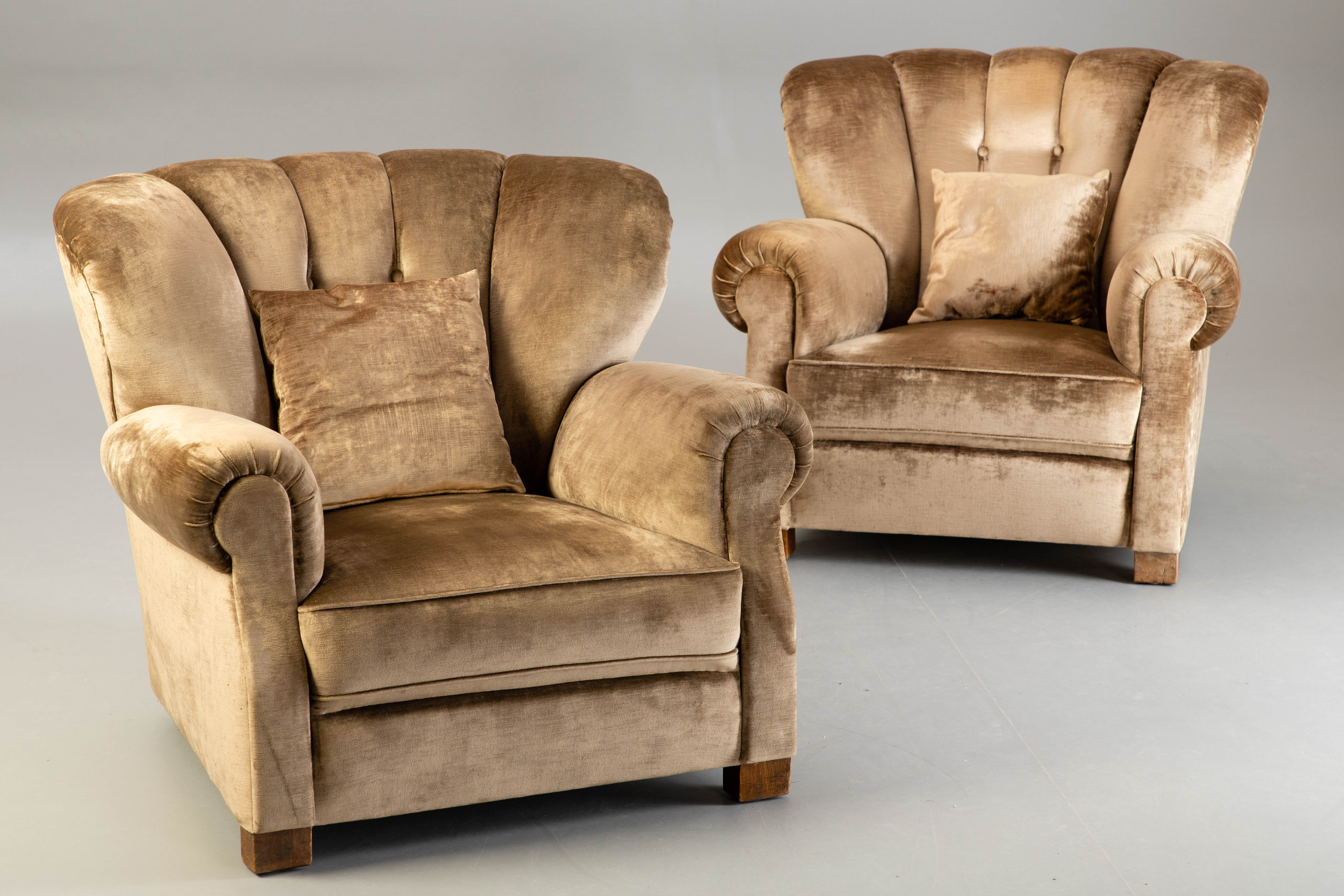 1990901. 2 lænestole med fløjlspolstring.