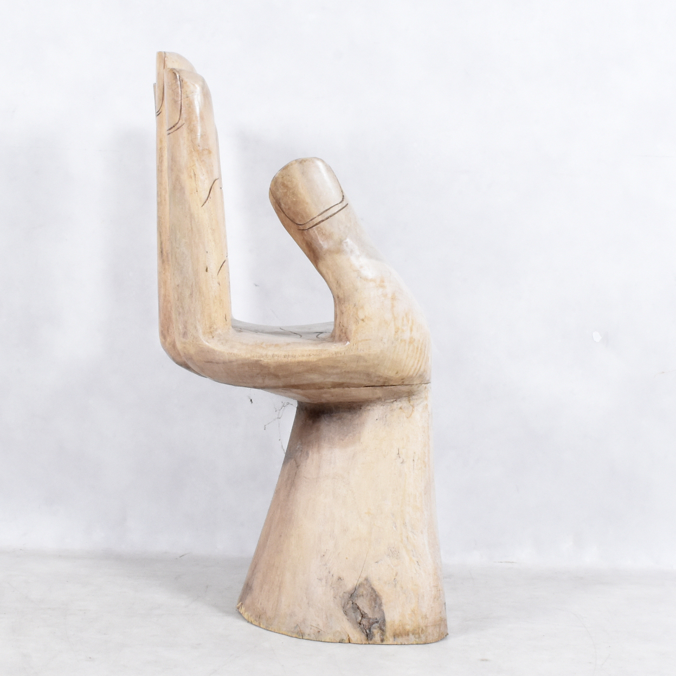 1992242. STOL I FORM AF EN HÅND, træ, 20. århundrede.