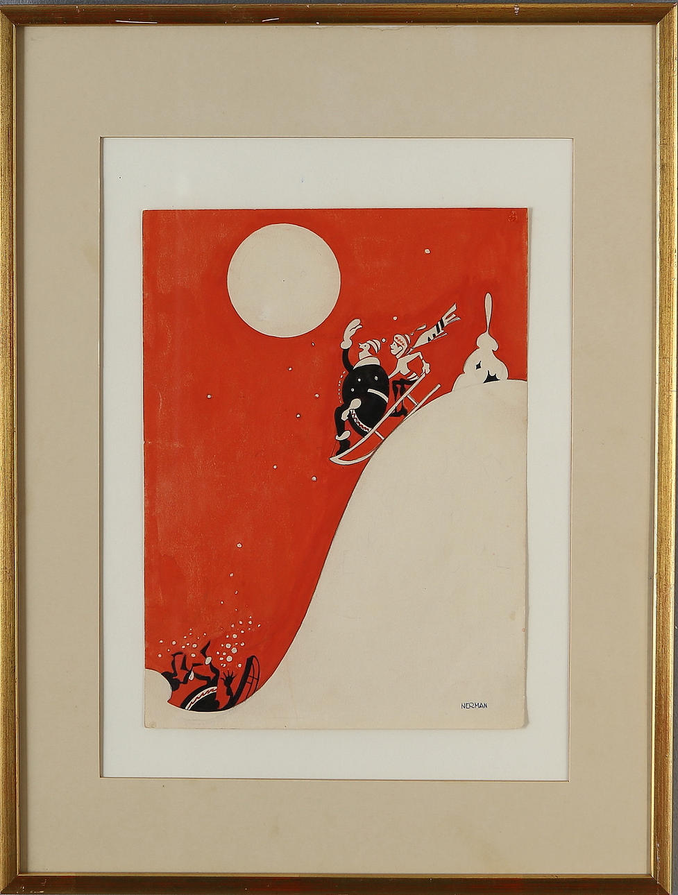 1993293. EINAR NERMAN. I slædebakken, mixed media, signeret.
