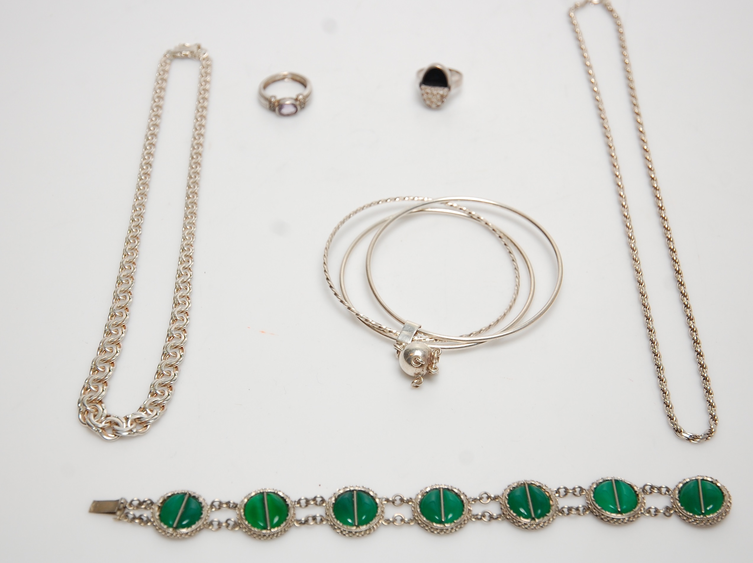 200480. SMYKKER, 6 dele, sølv.