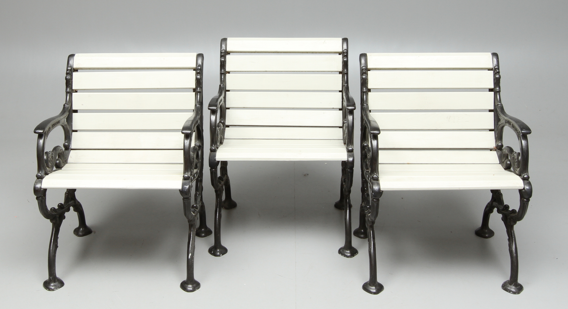 20117. HAVESTOLE, 3 stk, støbejern, 19 / 2000 tallet.