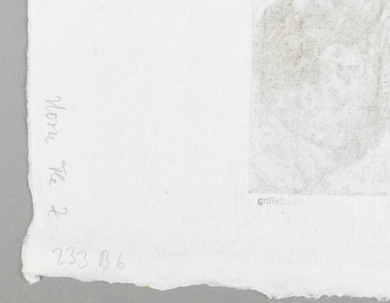 Minimale folder og isolerede brune pletter i kanten, to små rester af en montering på bagsiden.