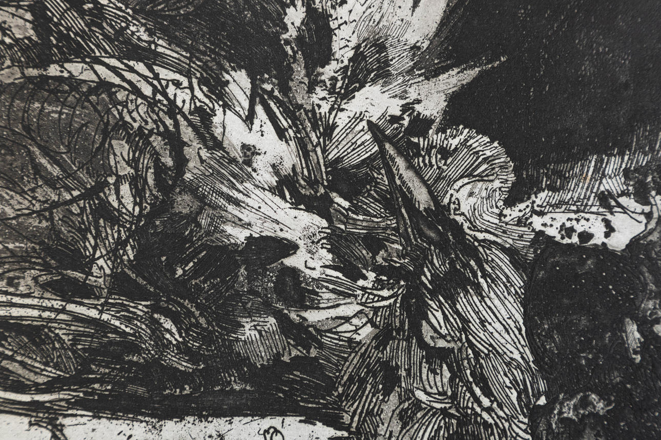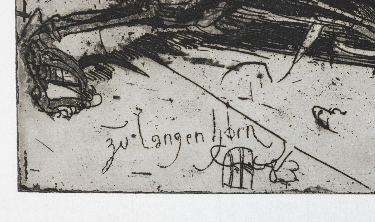 Horst Janssen (1929-1995), krage, radering, 1983, signeret, signeret, dateret og påskrevet 'zu Langenhorn' i pladen, ca. 21 x 29,5 cm, arkformat ca. 28x44 cm.