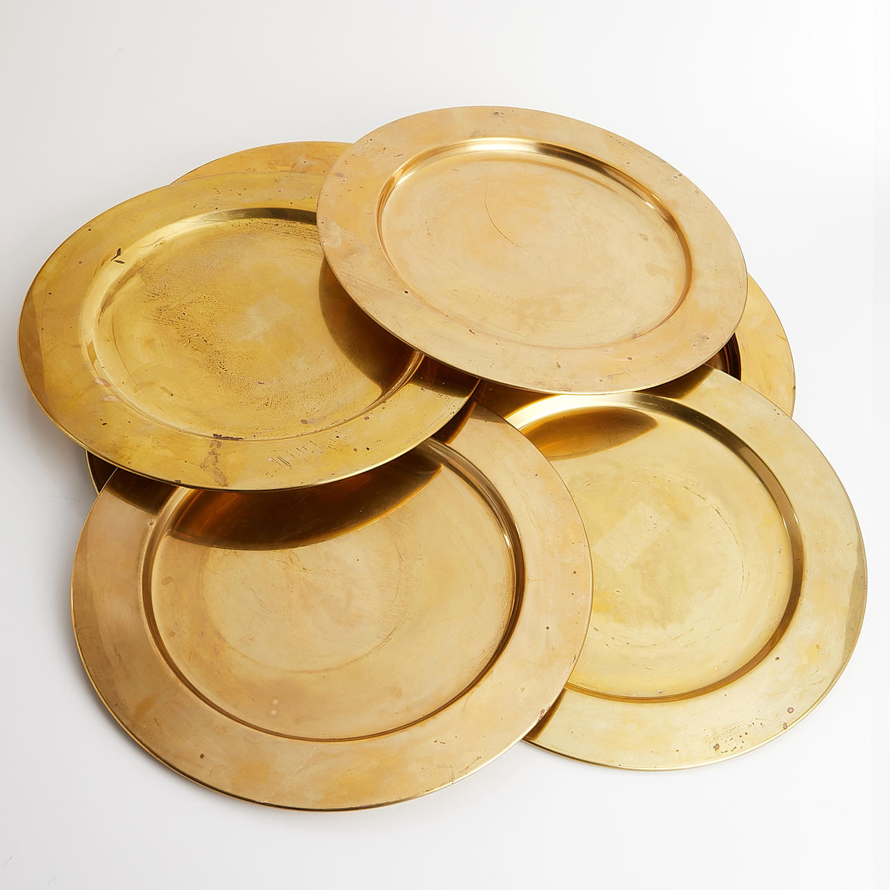 2017732. PLADER, 6+7 stk., messing, heraf 6 Skultuna.