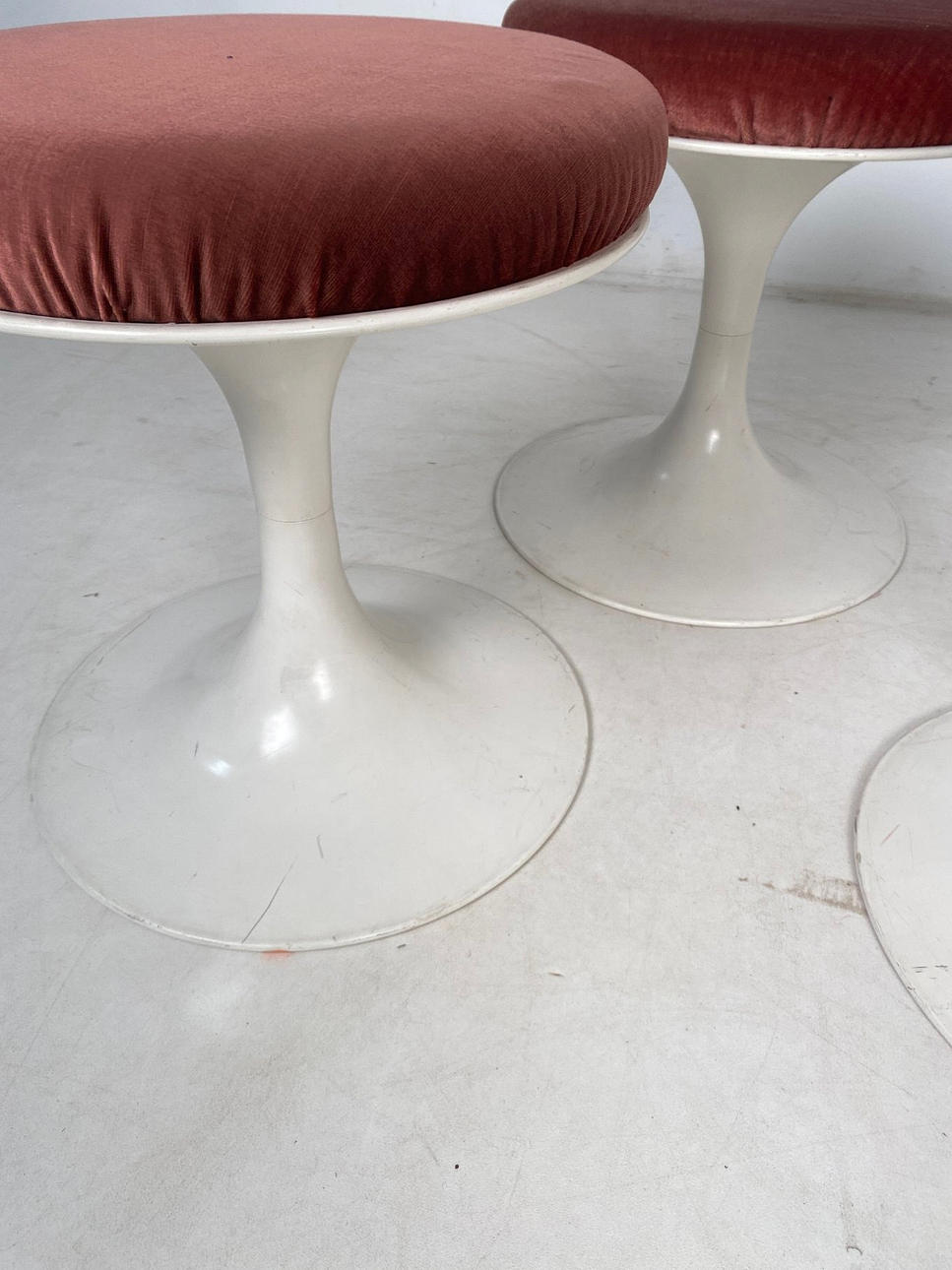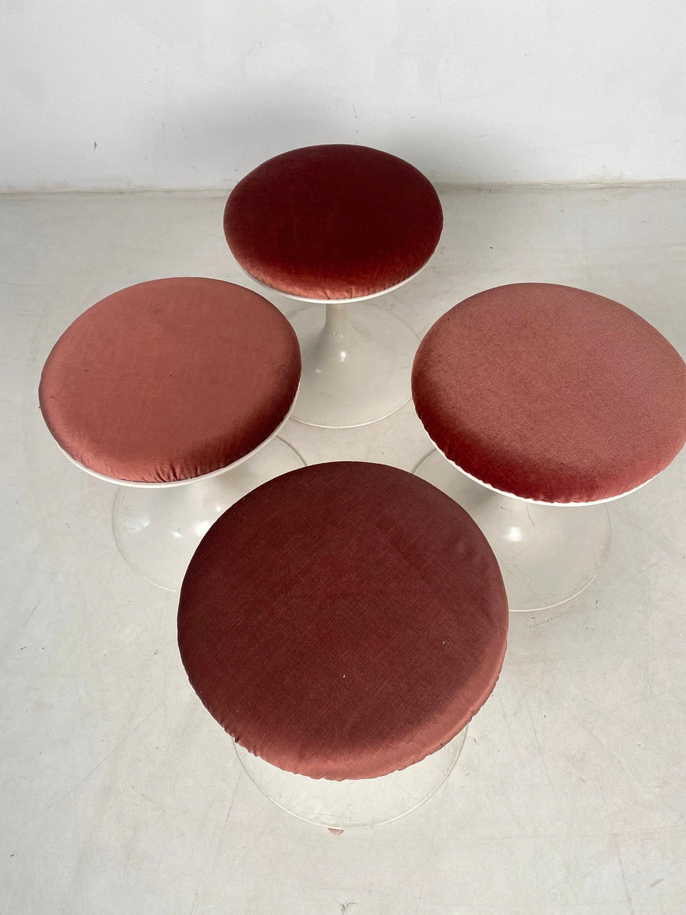 Fire tulipanstole. Massivt støbt aluminium, pulverlakeret. fløjlsstof.
