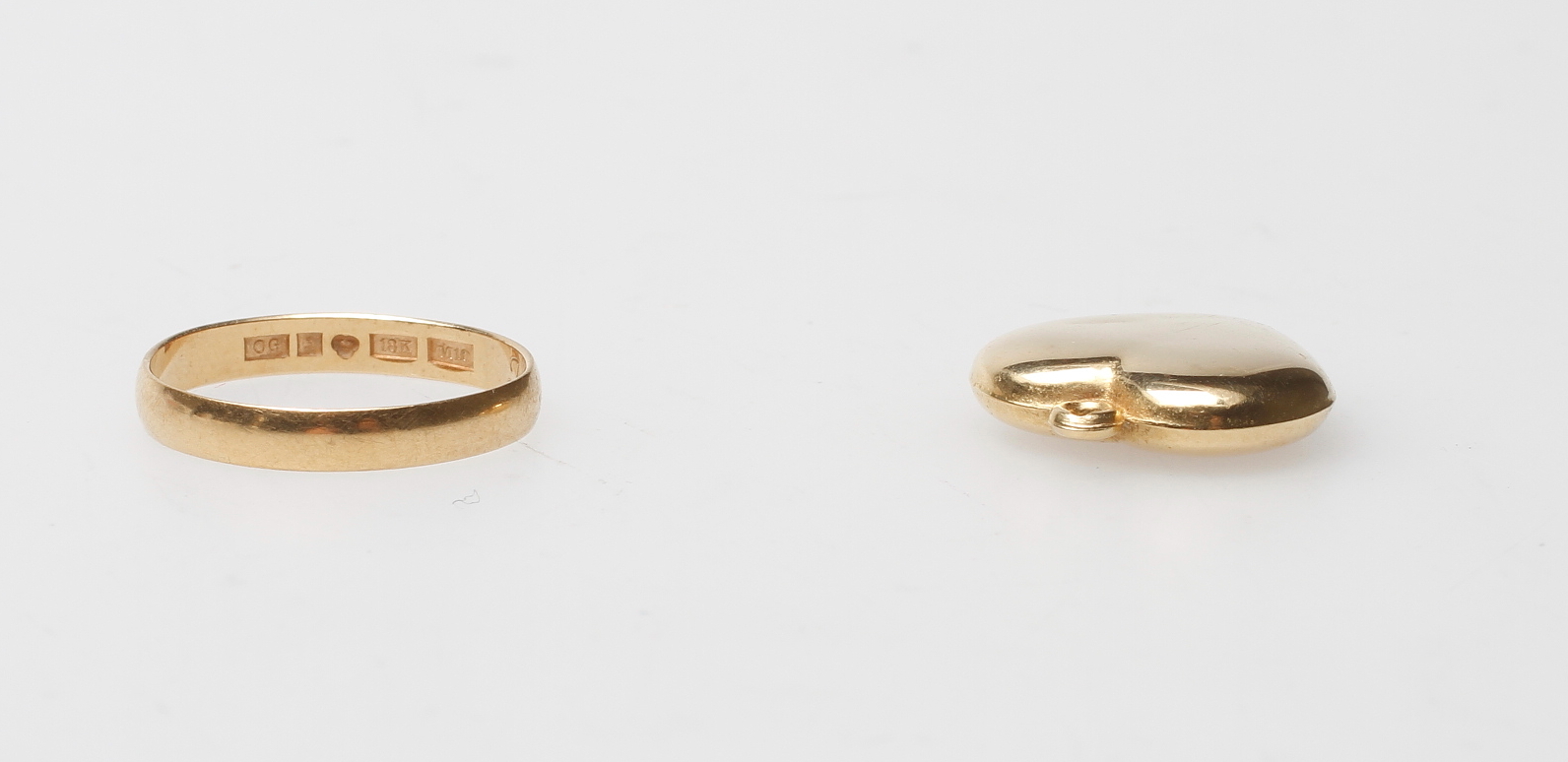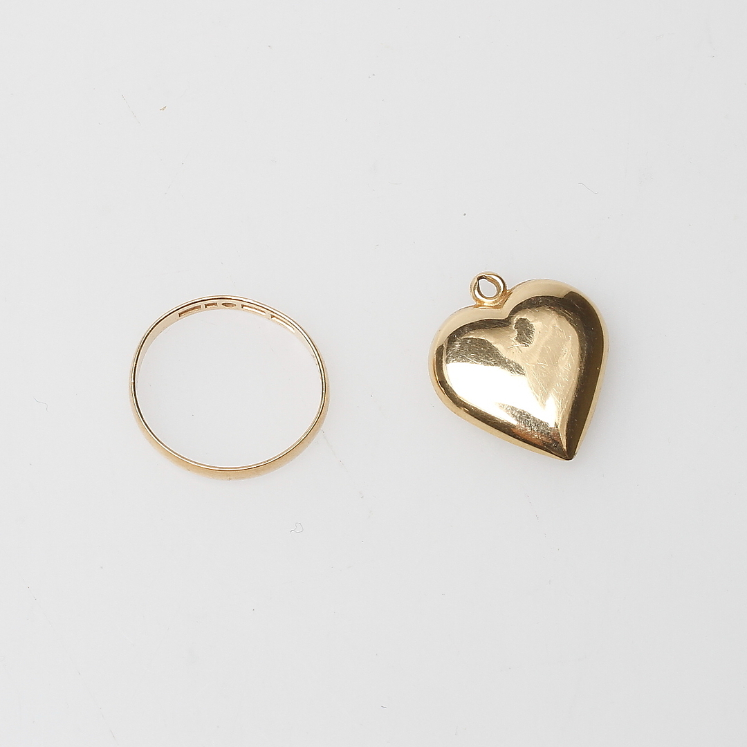 202192. RING og vedhæng, 18k guld, vægt ca. 3 gr.