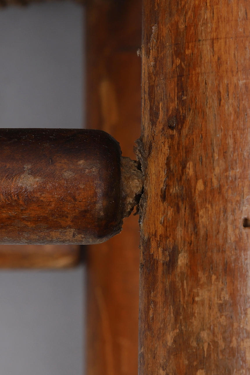 Skader på bunden af fletsædet. Kryds nålen af ved fastgørelse. Revner i træ.