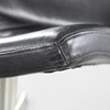 Sort læder, spin med retur. Fem-pas fod i børstet metal. Bredde 63 cm. Dybde ca 80 cm. Ryghøjde 83 cm.