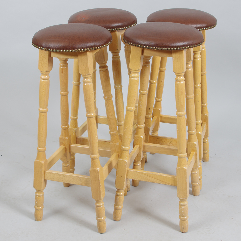 203262. BAR PALLER, 4 stk, bøg/brunt kunstlæder.