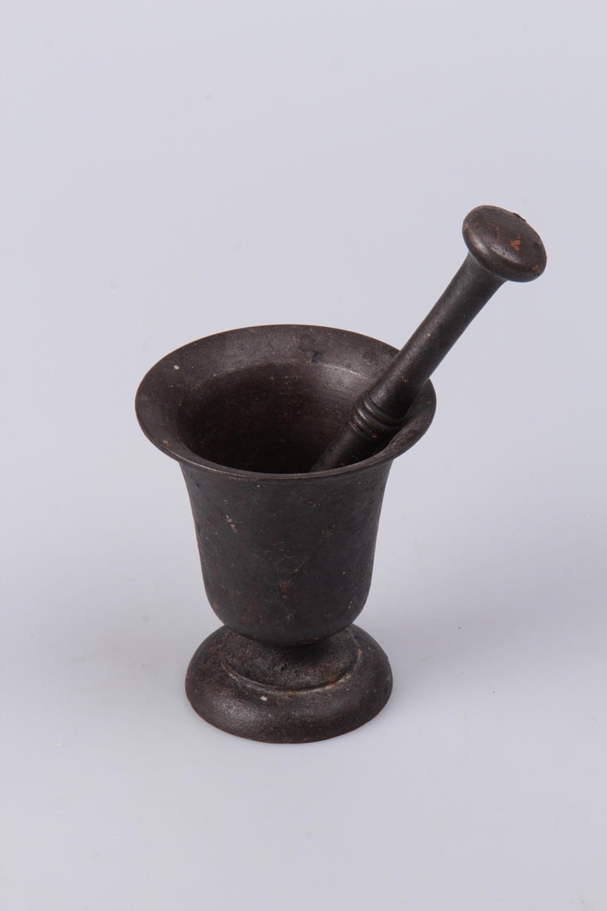 MØRTEL, med stød, jern, 1800-tallet.