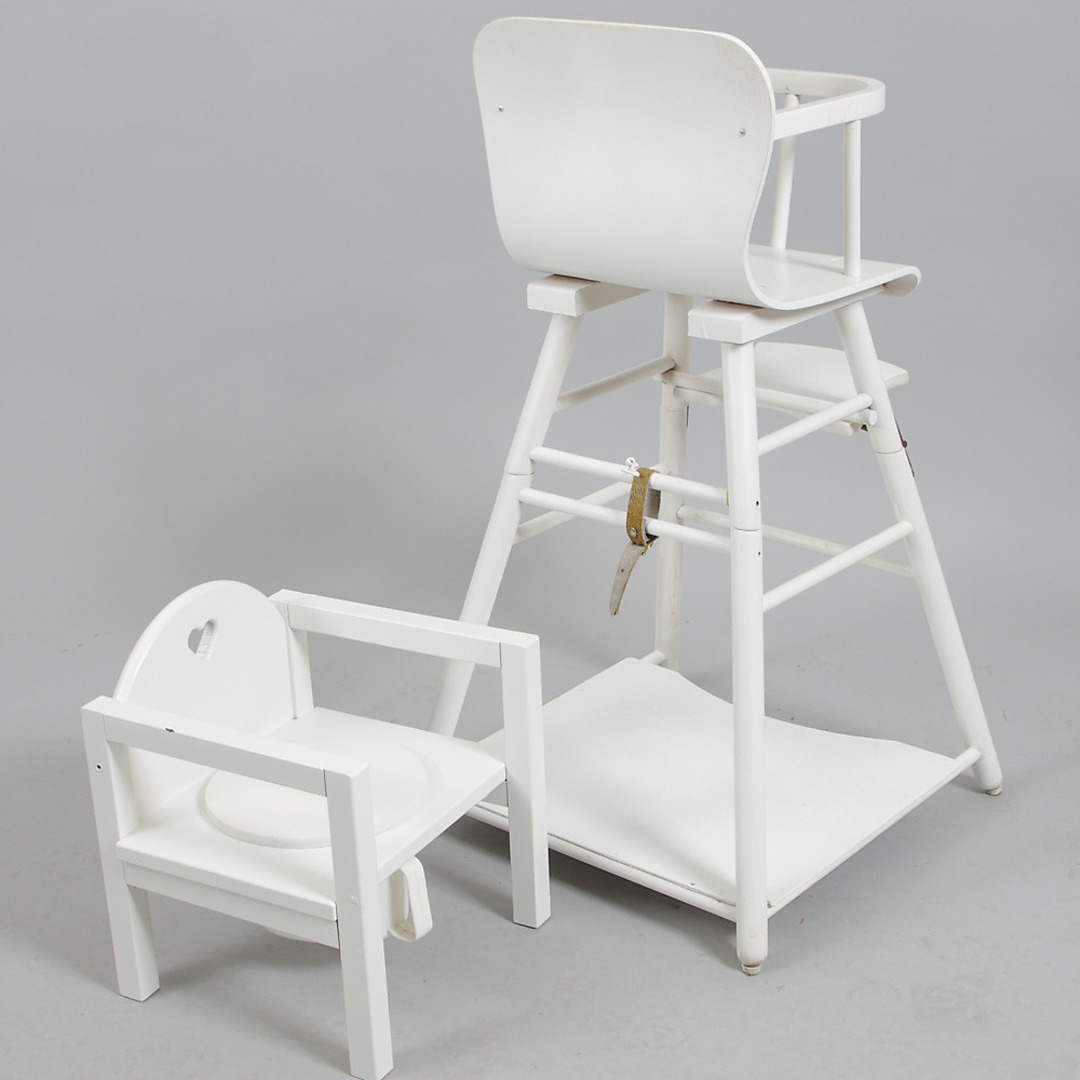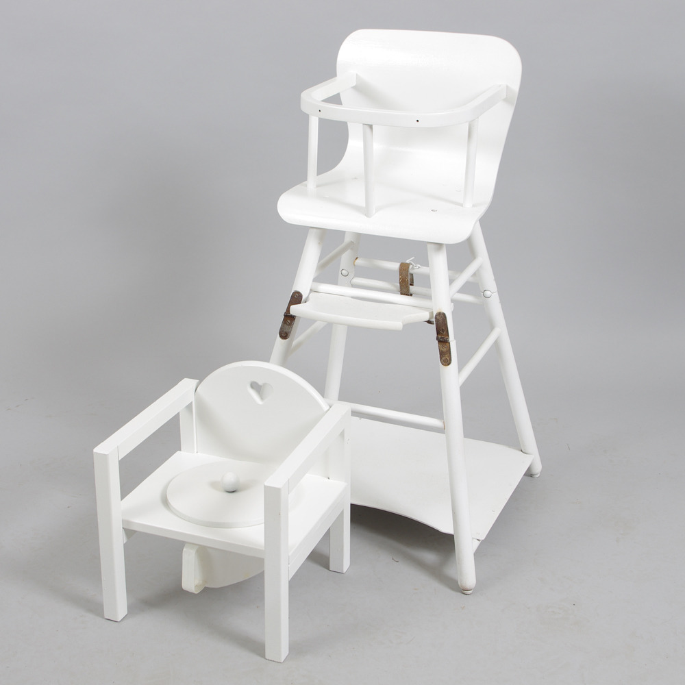 203344. BØRNESTOL OG GRYDE, hvidmalet.