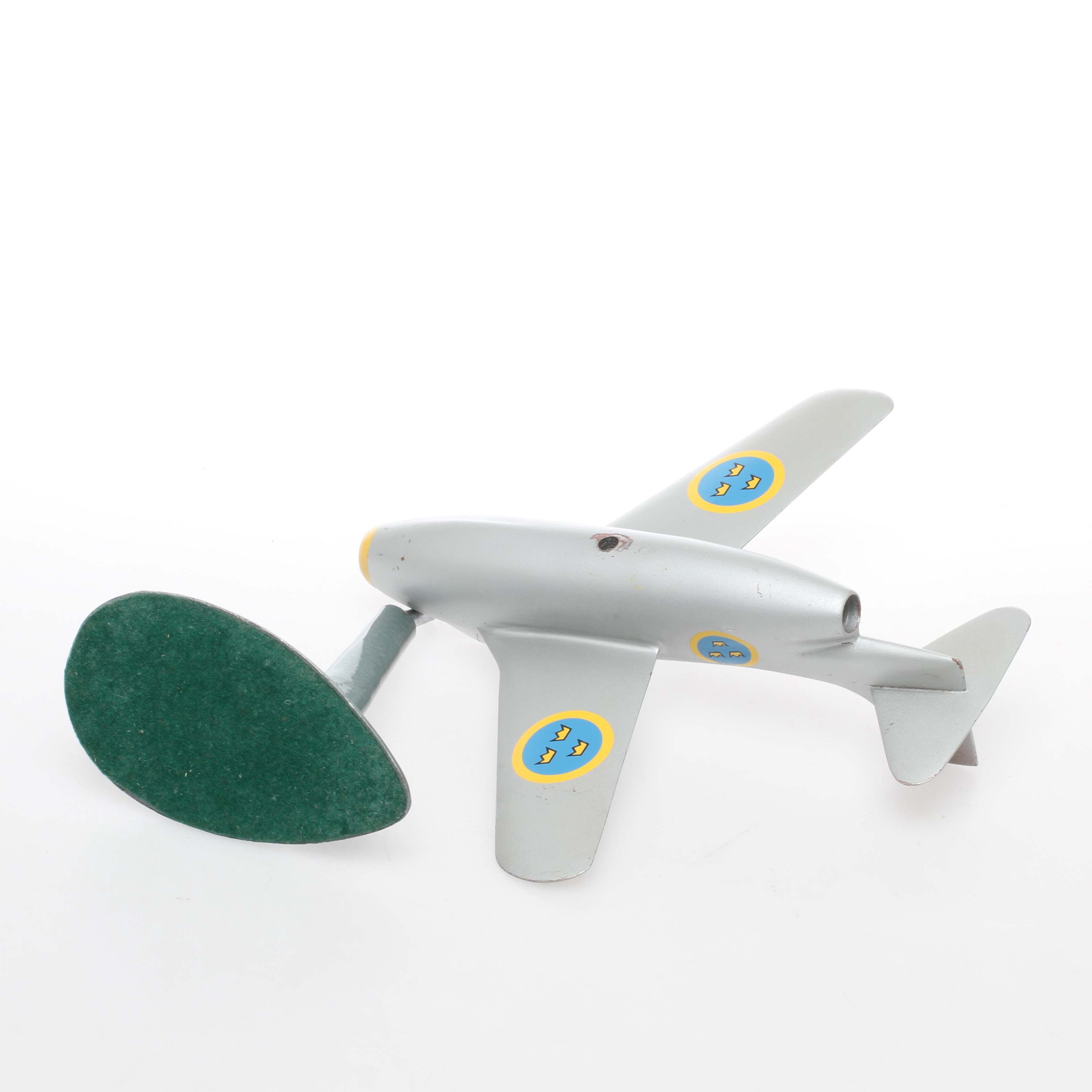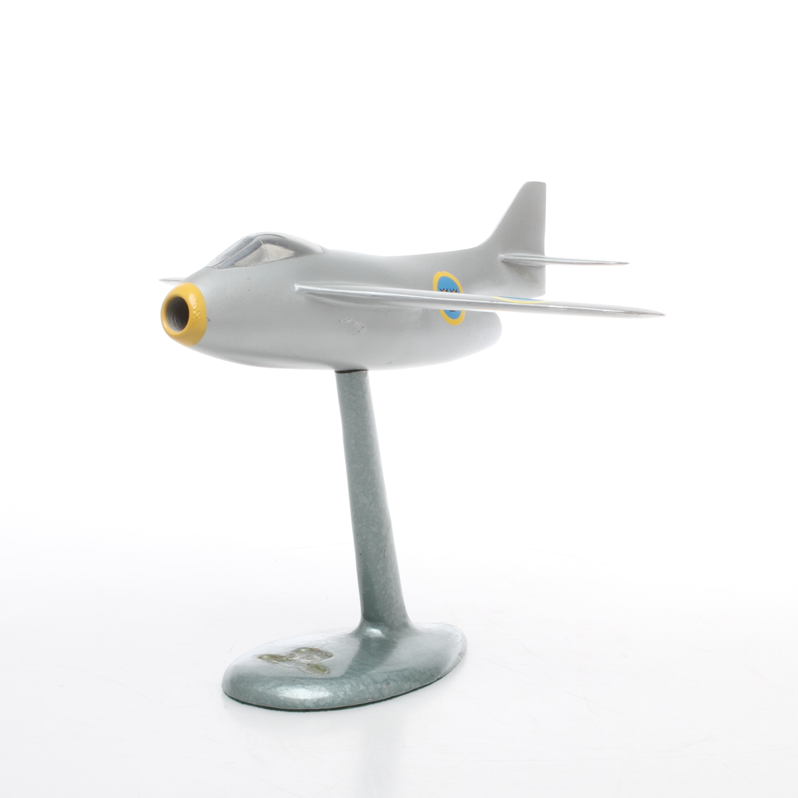 203520. MODELFLY SAAB 29 TØNNE. METAL på stativ. 1900-tallet.