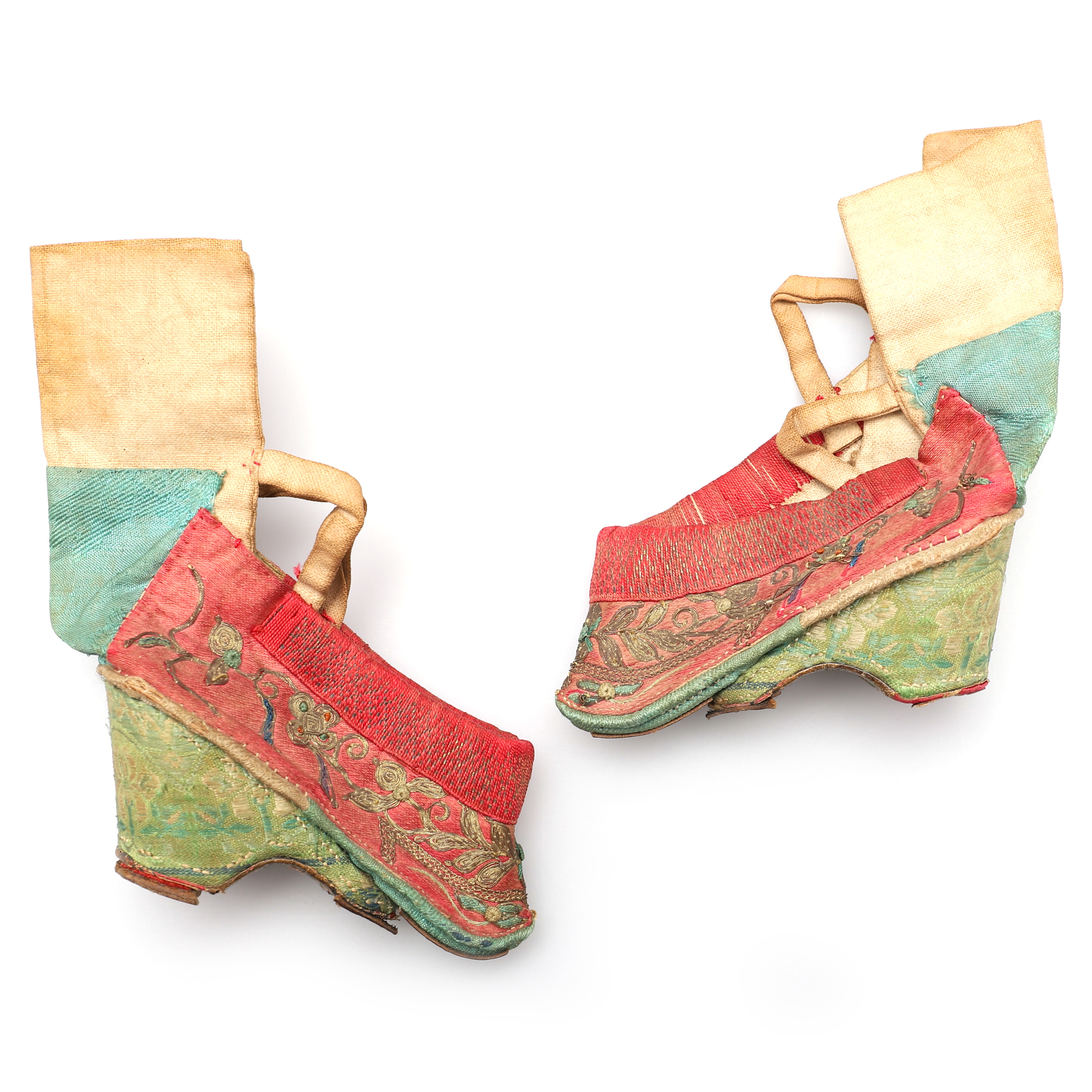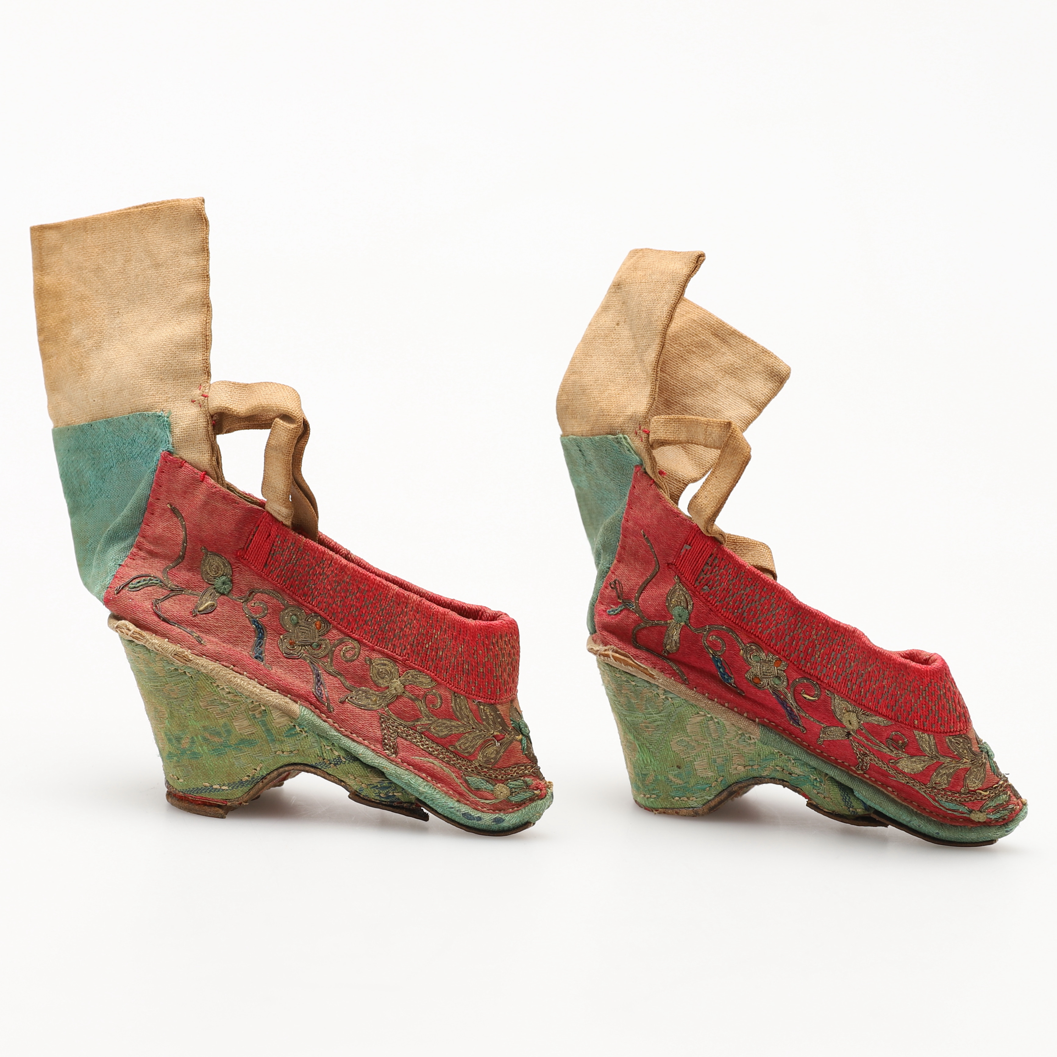 2037054. ET PAR KINESISK BRODEREDE SILKE LOTUS-SKO.