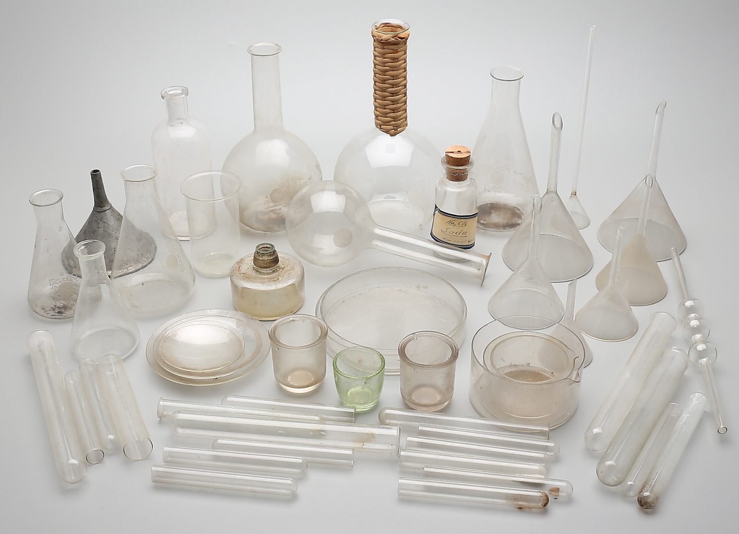 203717. LABORATORIEGLAS, ca. 50 dele, 20. århundrede.