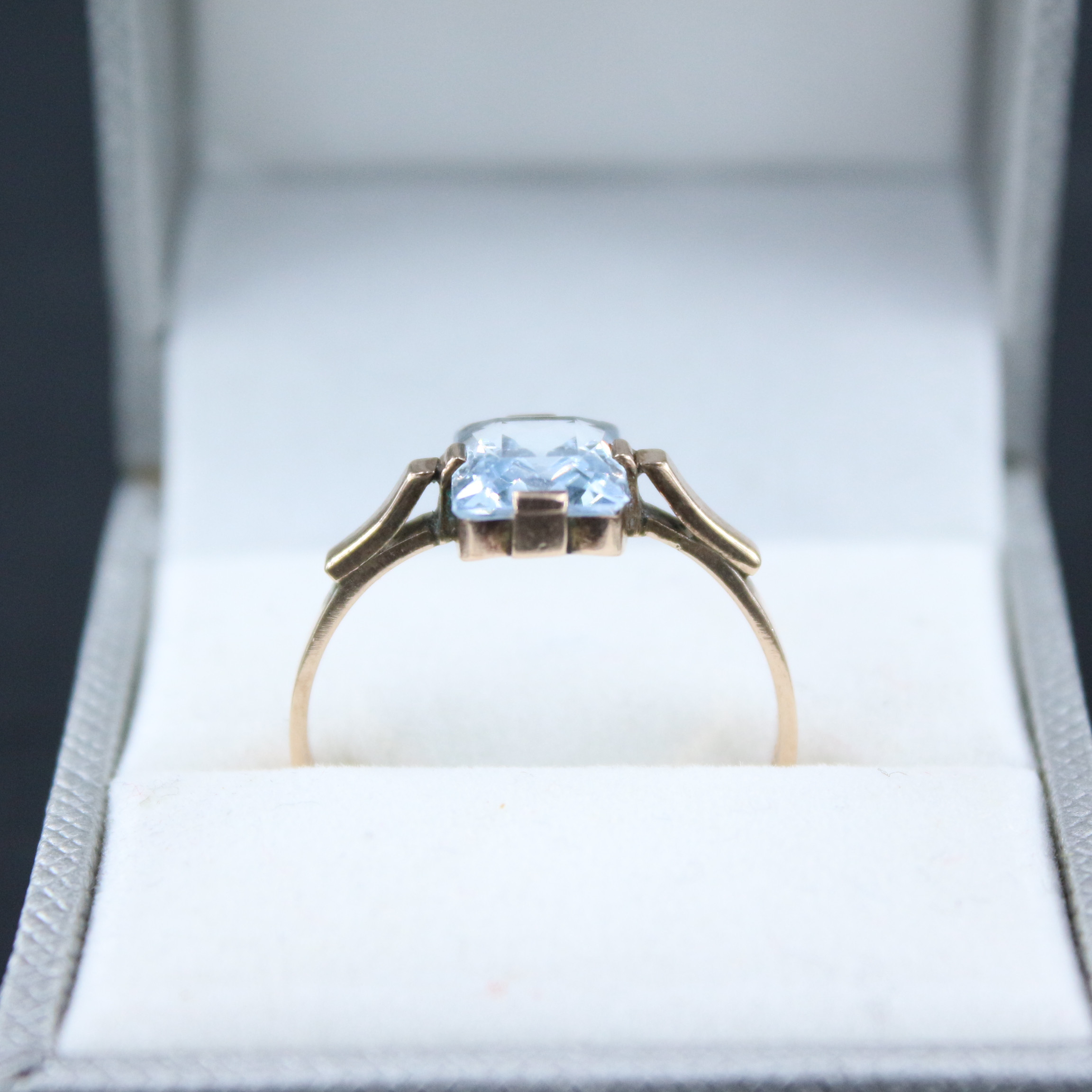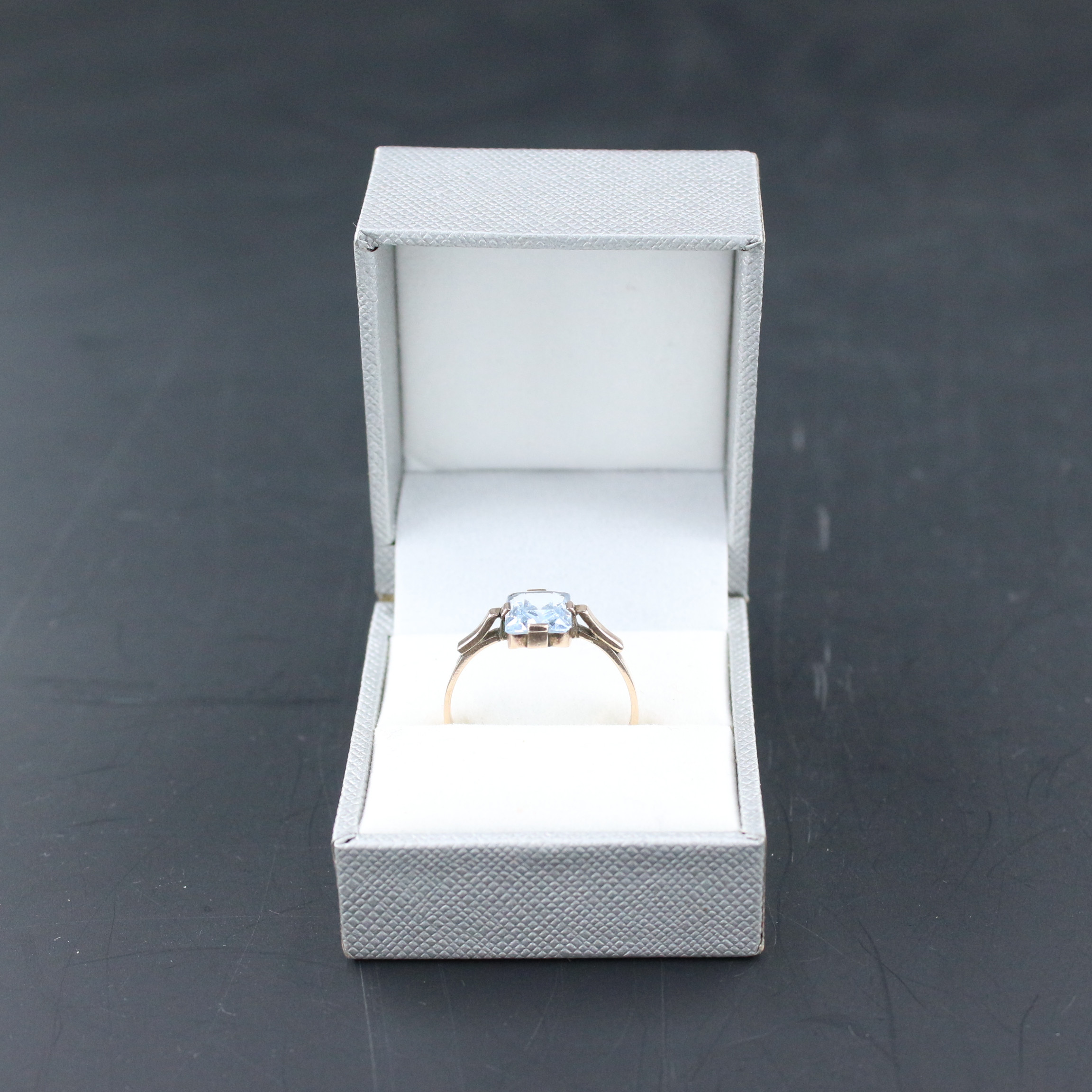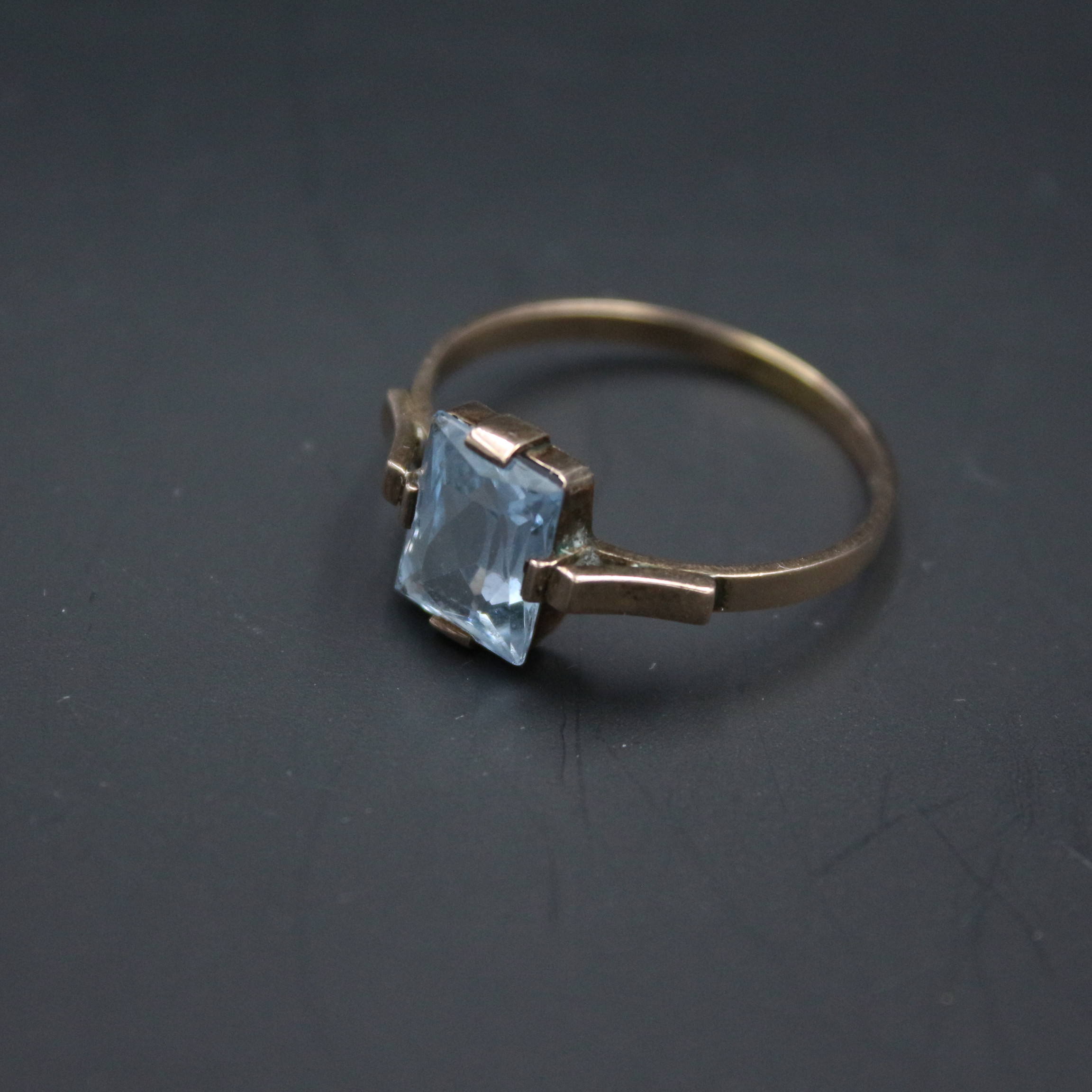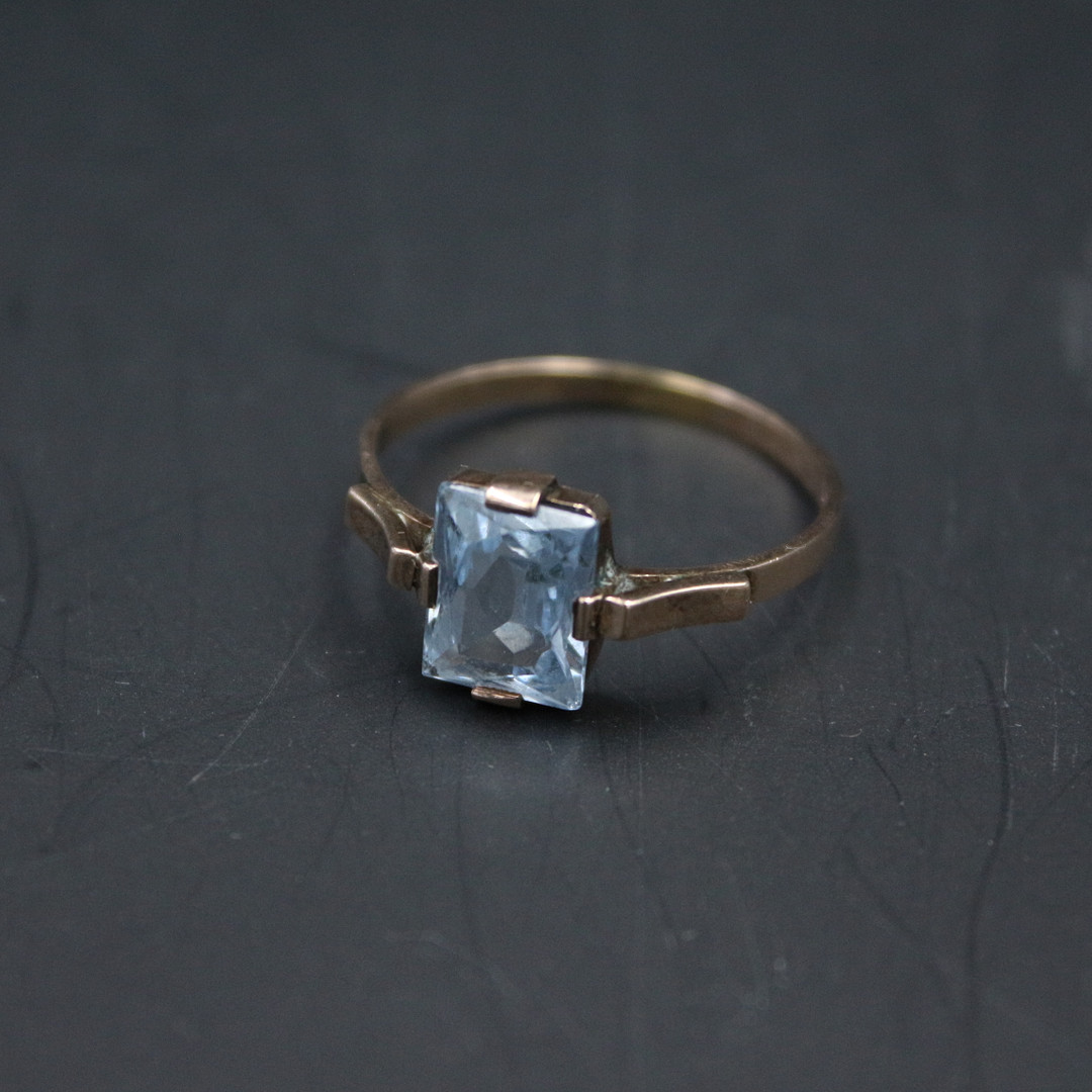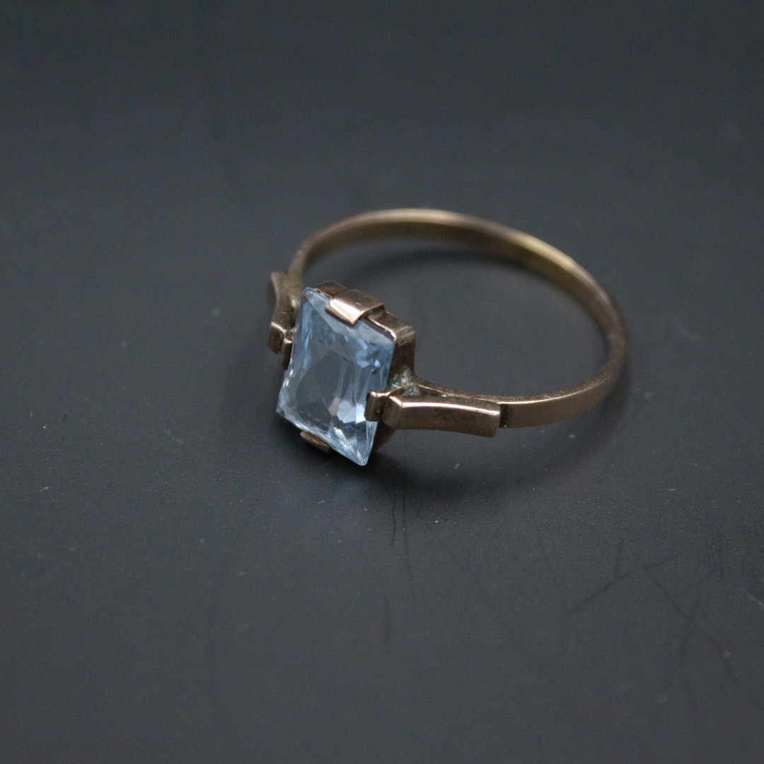 2037544. Filigranring med blå sten, 333 guld.
