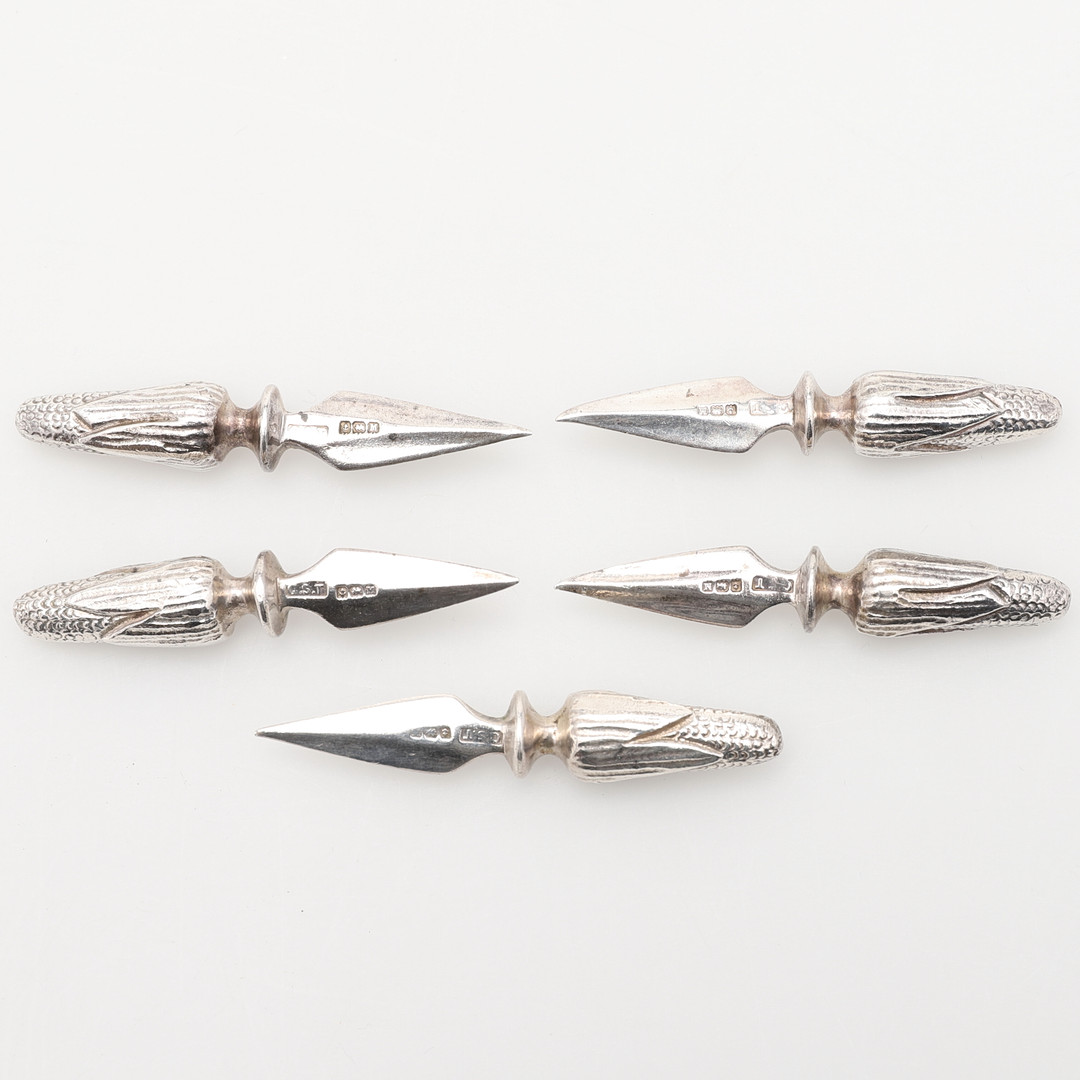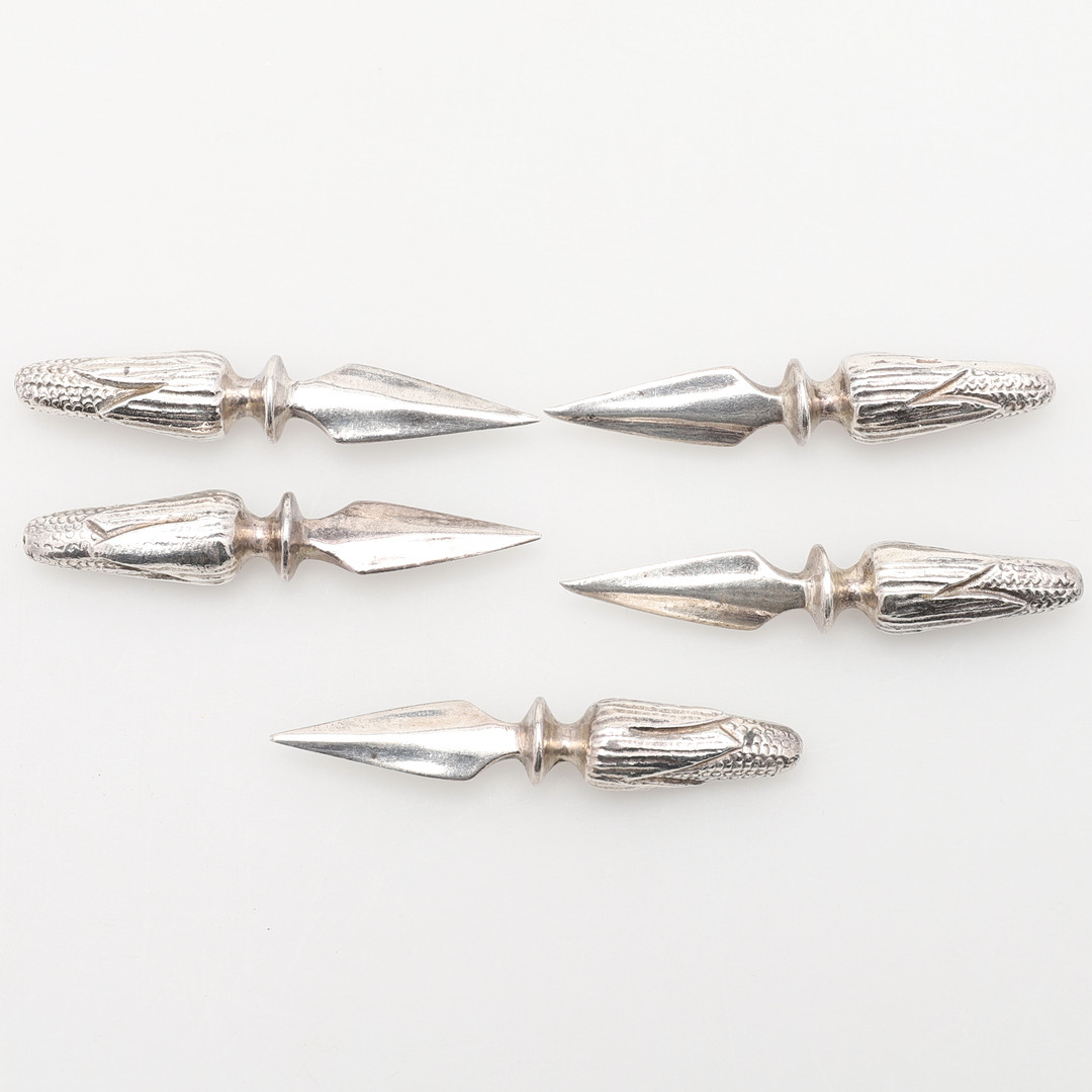 2037964. FEM STØBTE SØLVMAJS PÅ COB-PIGGENE.