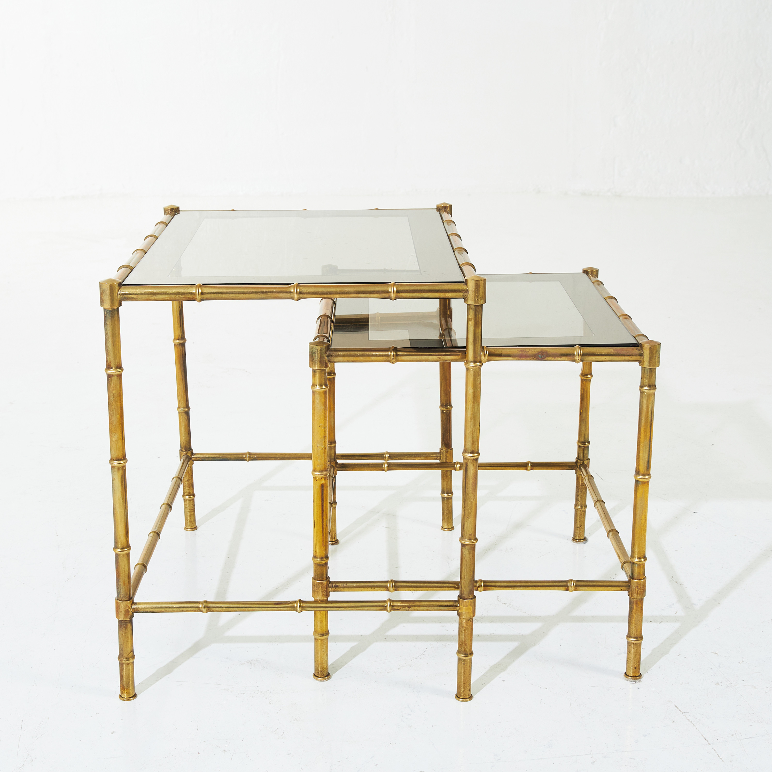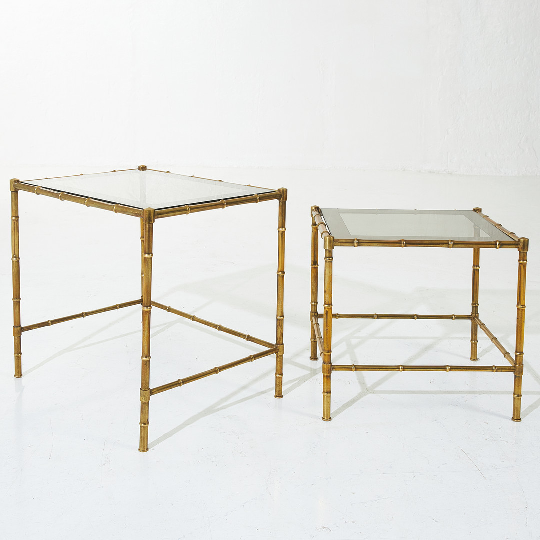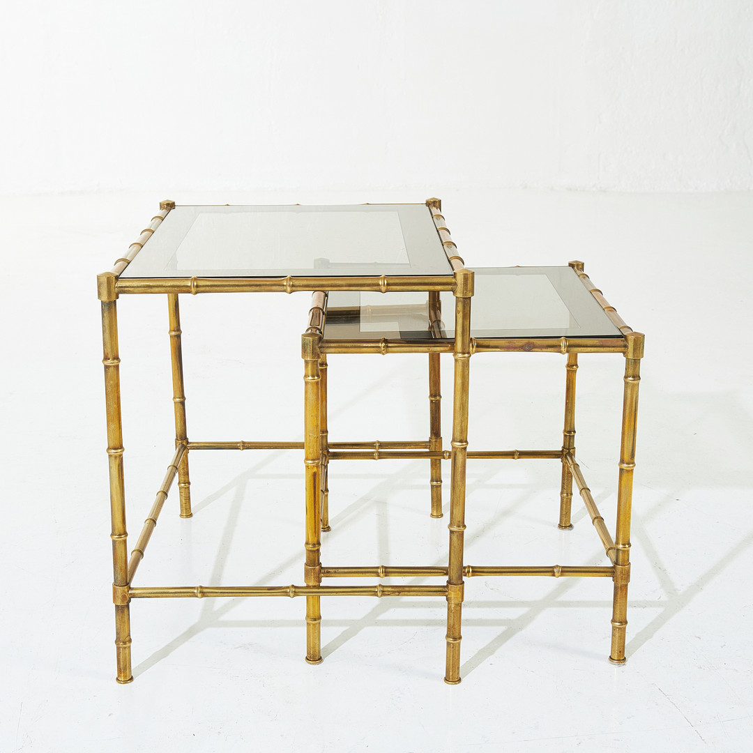 2040562. STOLEBORD, 2 dele, messing og glas, imiteret bambus.