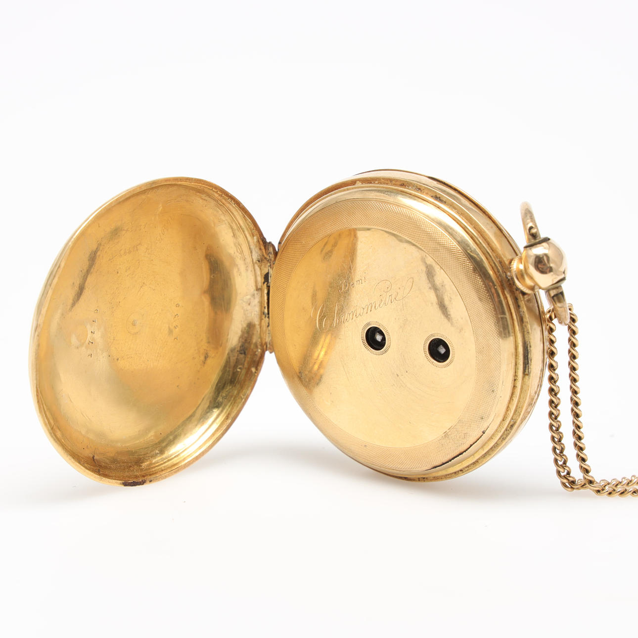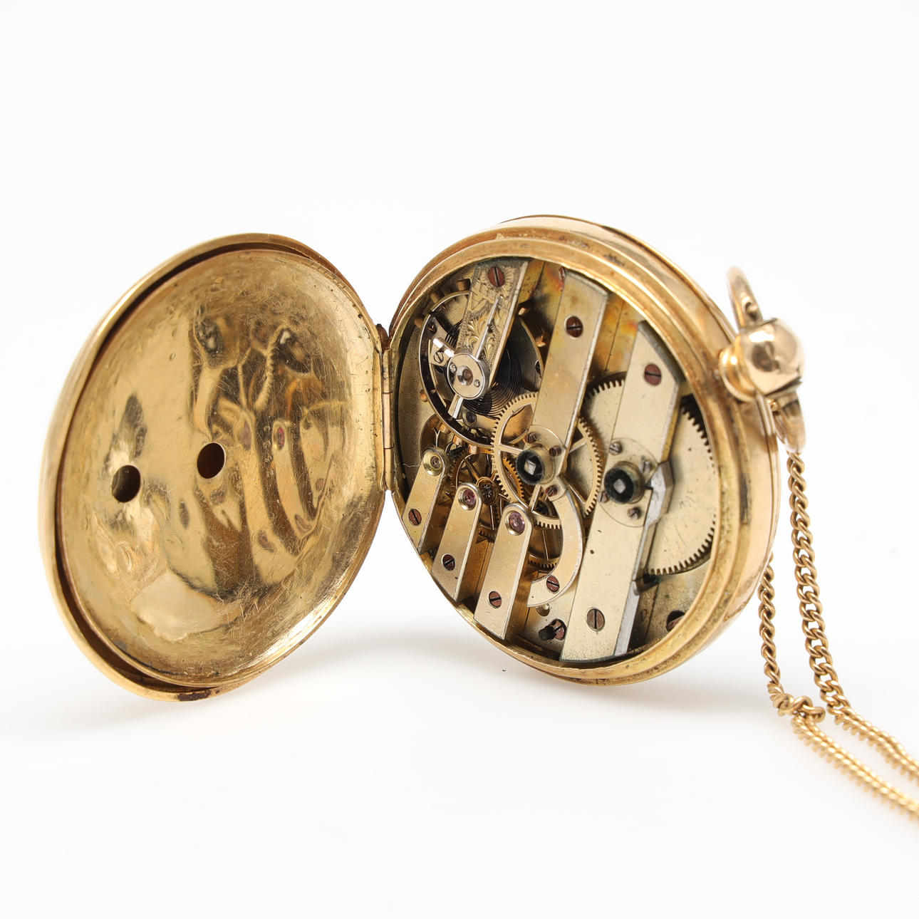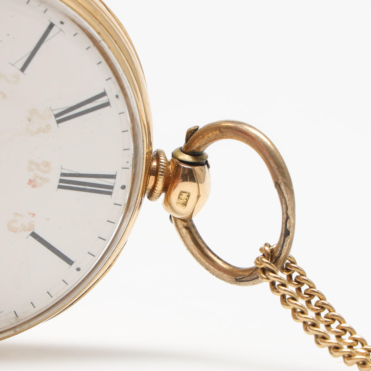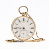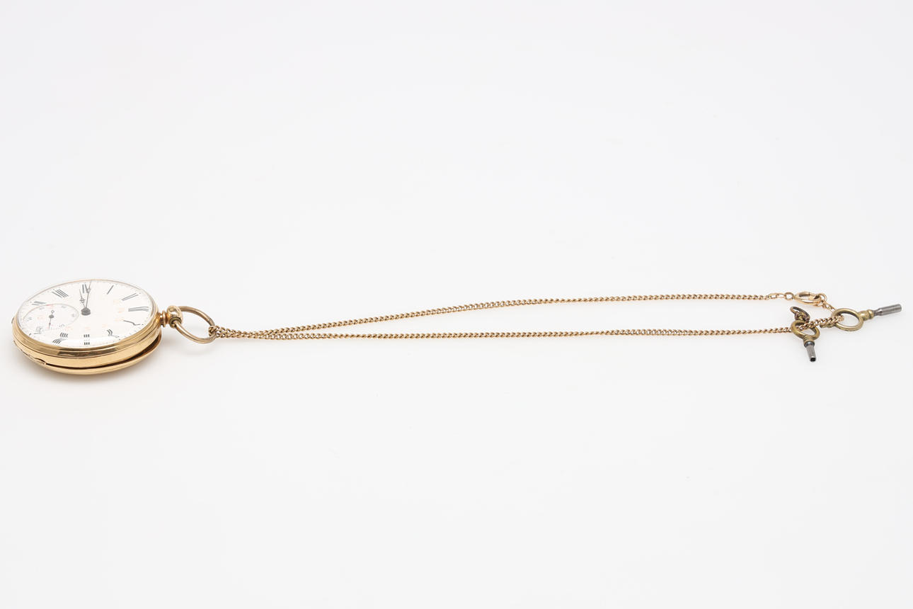 Lommeur, urkasse i 18K guld, nøgletræk, slutningen af 1800-tallet. Hvid urskive med undersekund, suppleret i rød med 13-24. Inderbetræk i 18K guld. Diameter ca 4,6 cm. Urets vægt 75 gram.