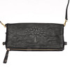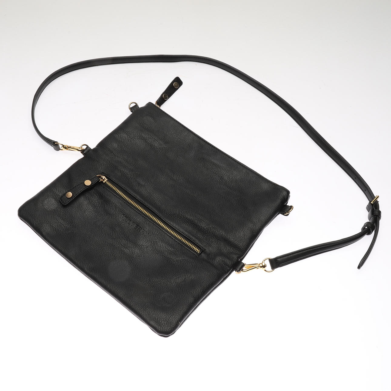 Læder med messingdetaljer. Indvendig foret med tekstil. Fire opbevaringsrum. Bredde ca 29 cm. Højde ca 29 cm.