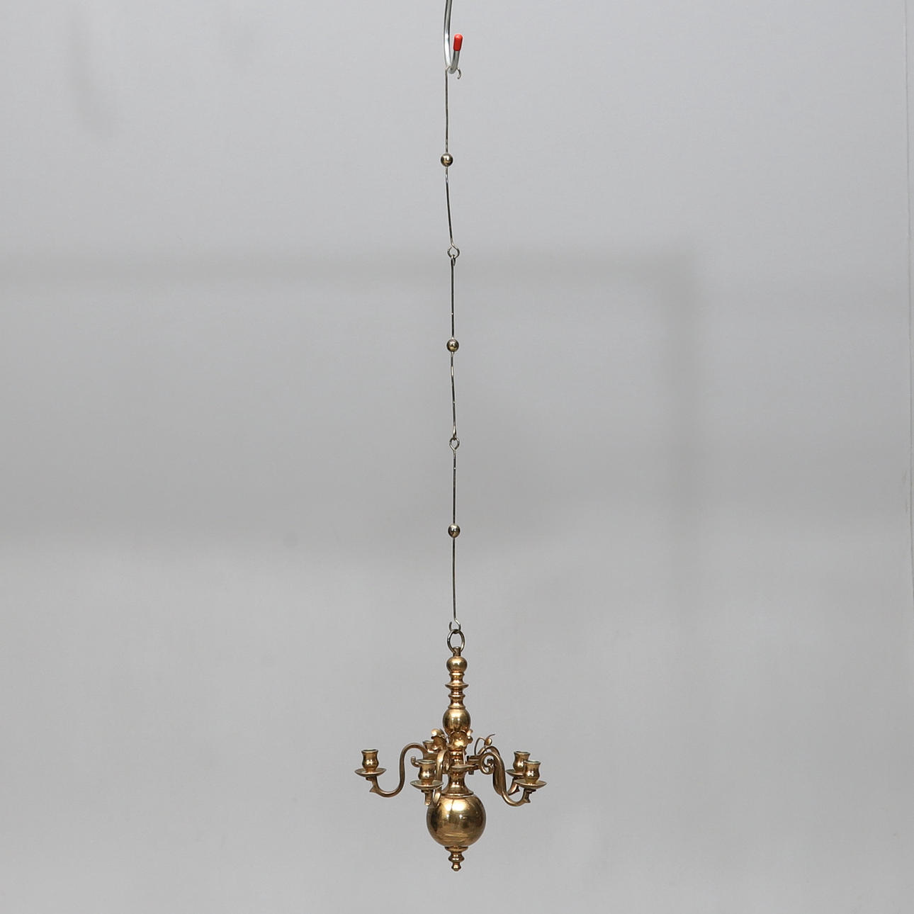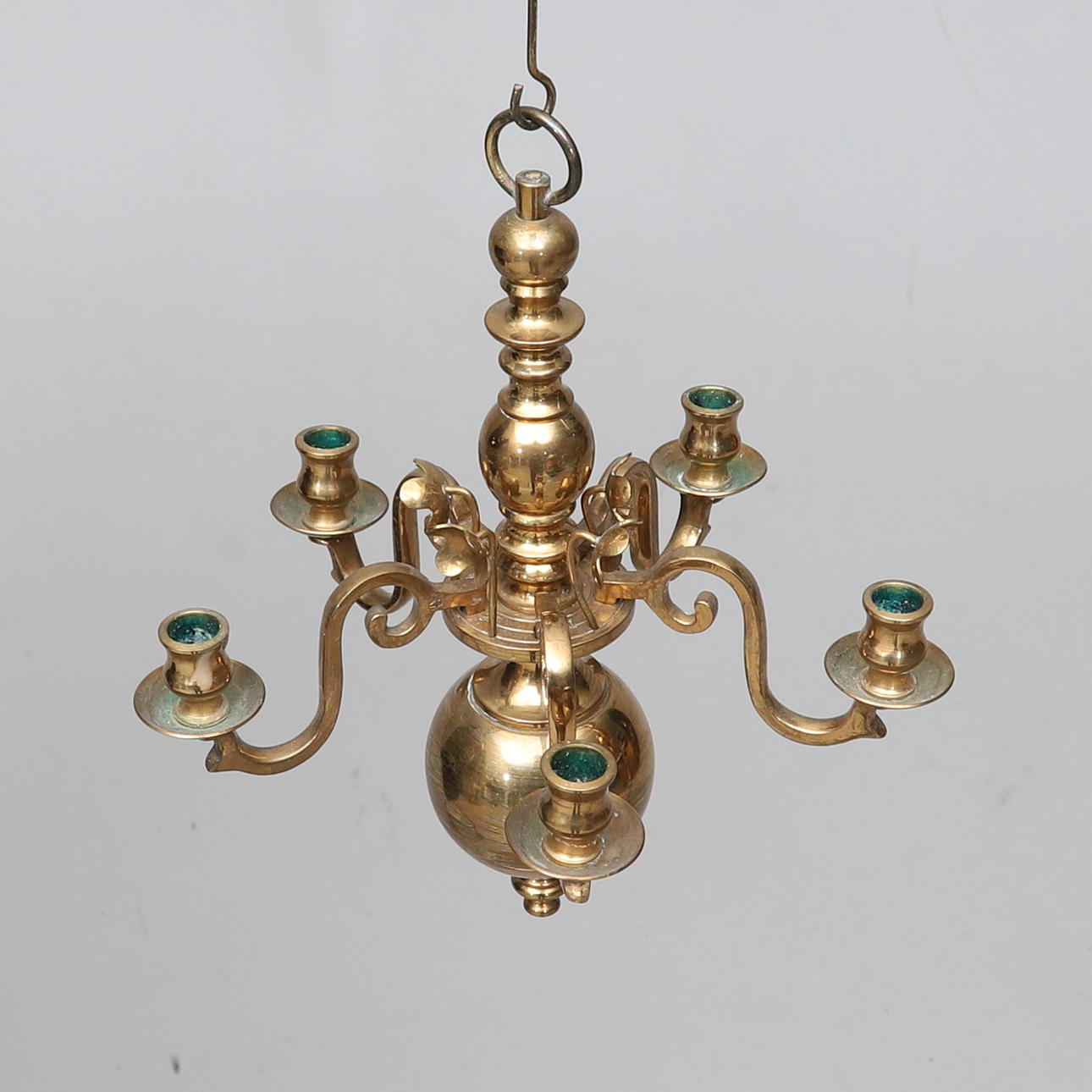 Malm. Fem lysestager. Diameter ca 18, højde ekskl. ophæng ca 22 cm.