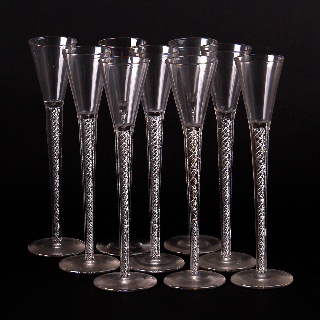 204967. BLONDGLAS, med luftspiral, 9 stk. 1900-tallet.