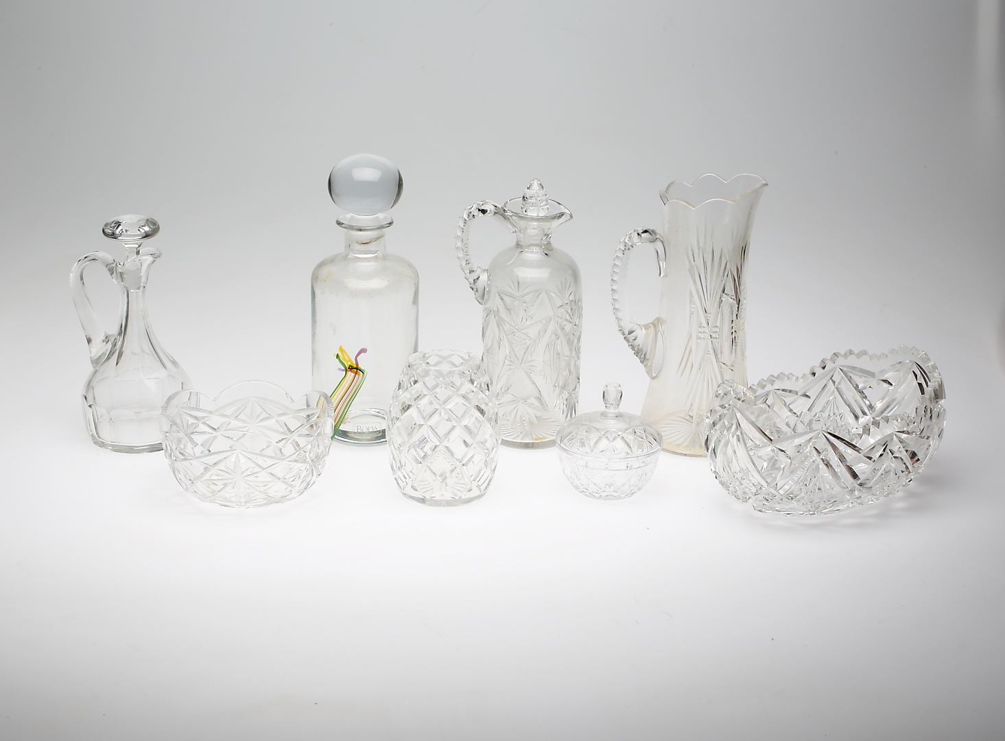205713. Sæt, Glas, Krystal, 8 dele.