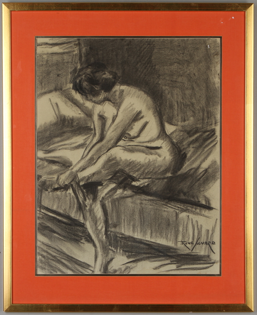 20577. RUNE SIGVARD. Nøgenstudie, kultegning, signeret.