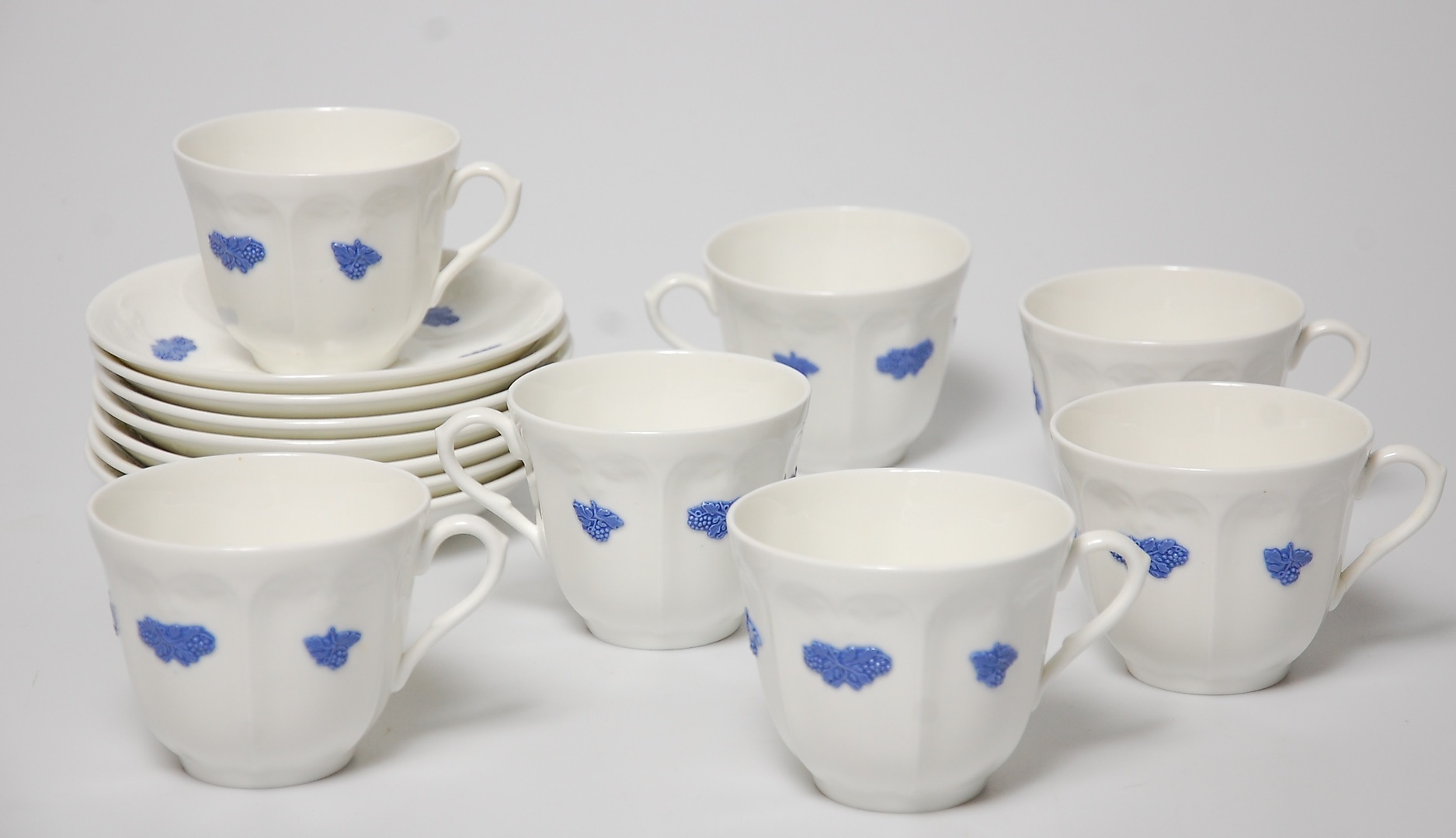 205857. TEKOPPER, 14 dele, Blå blomst, Gustavsberg.