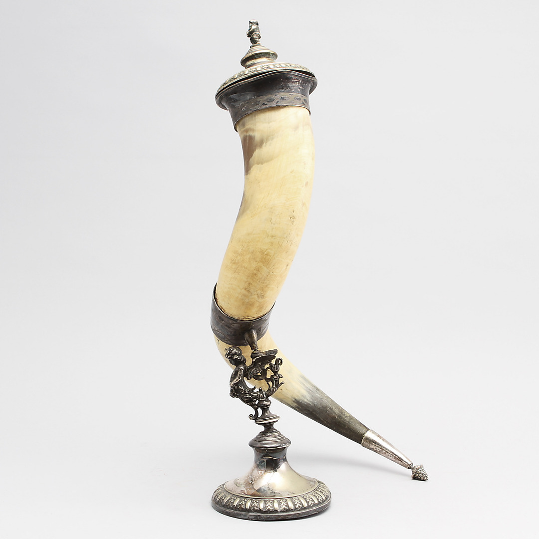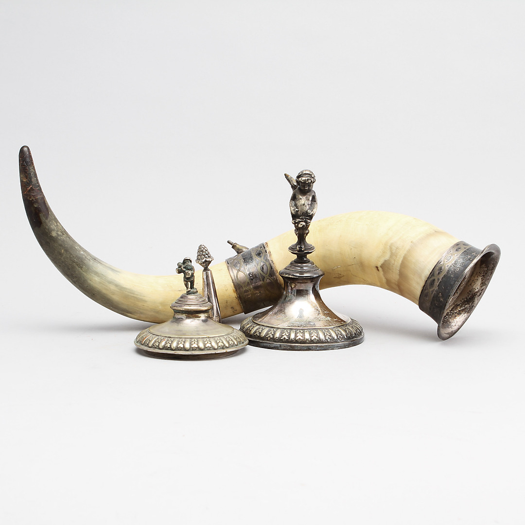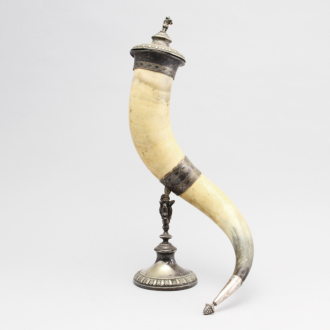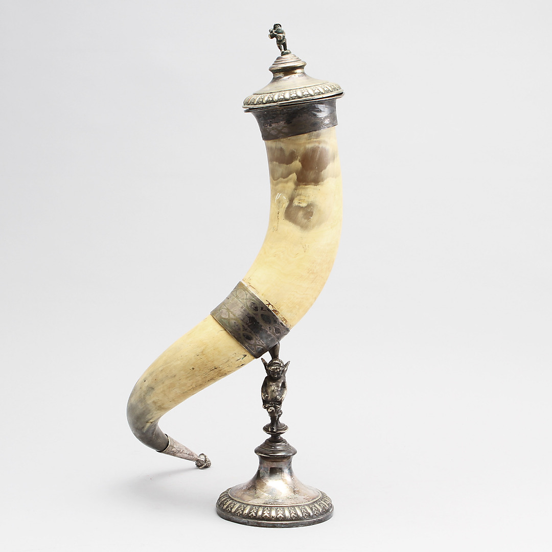 205976. DRIKKEHORN, nysølv og ben.