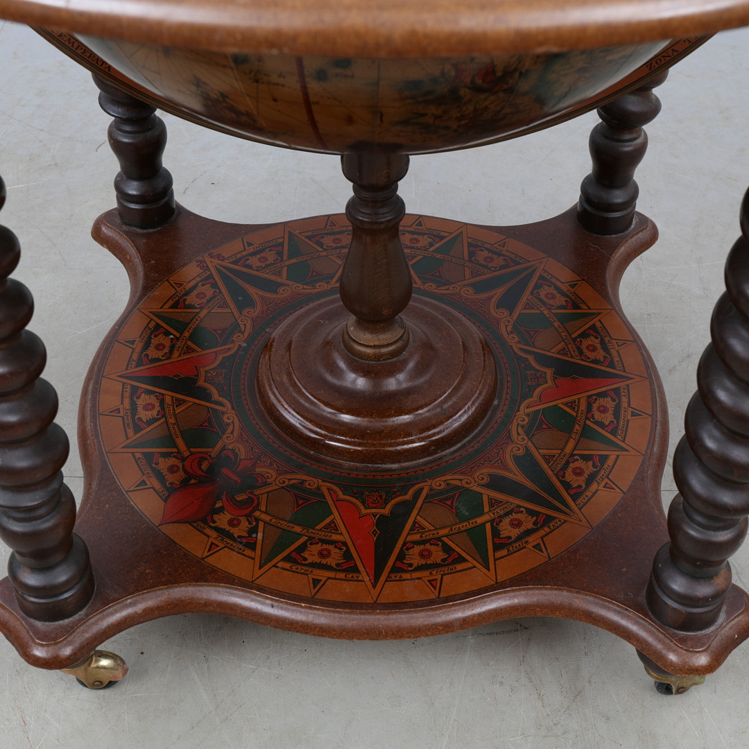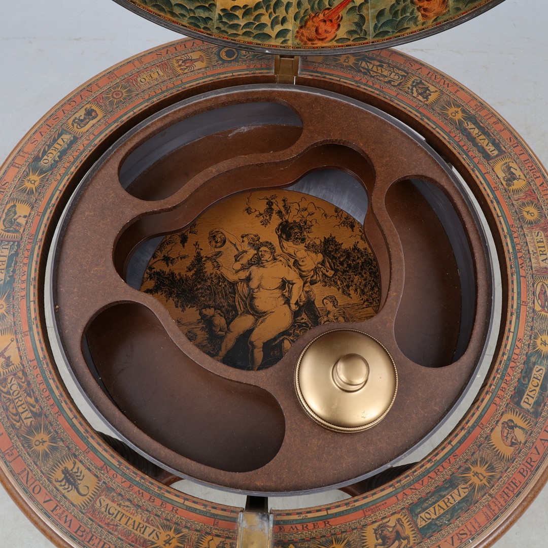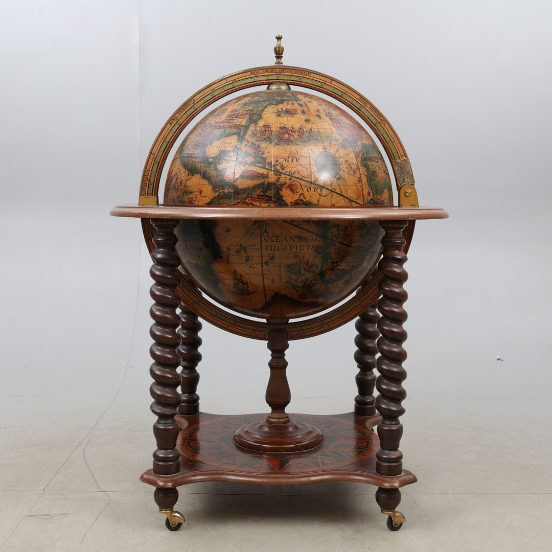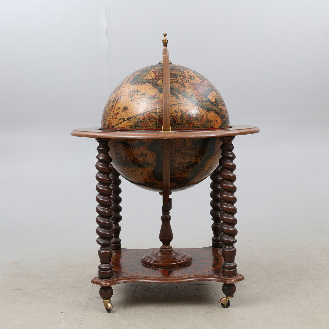 2061666. BARSKÅP, i form af en globus, 20. århundrede.