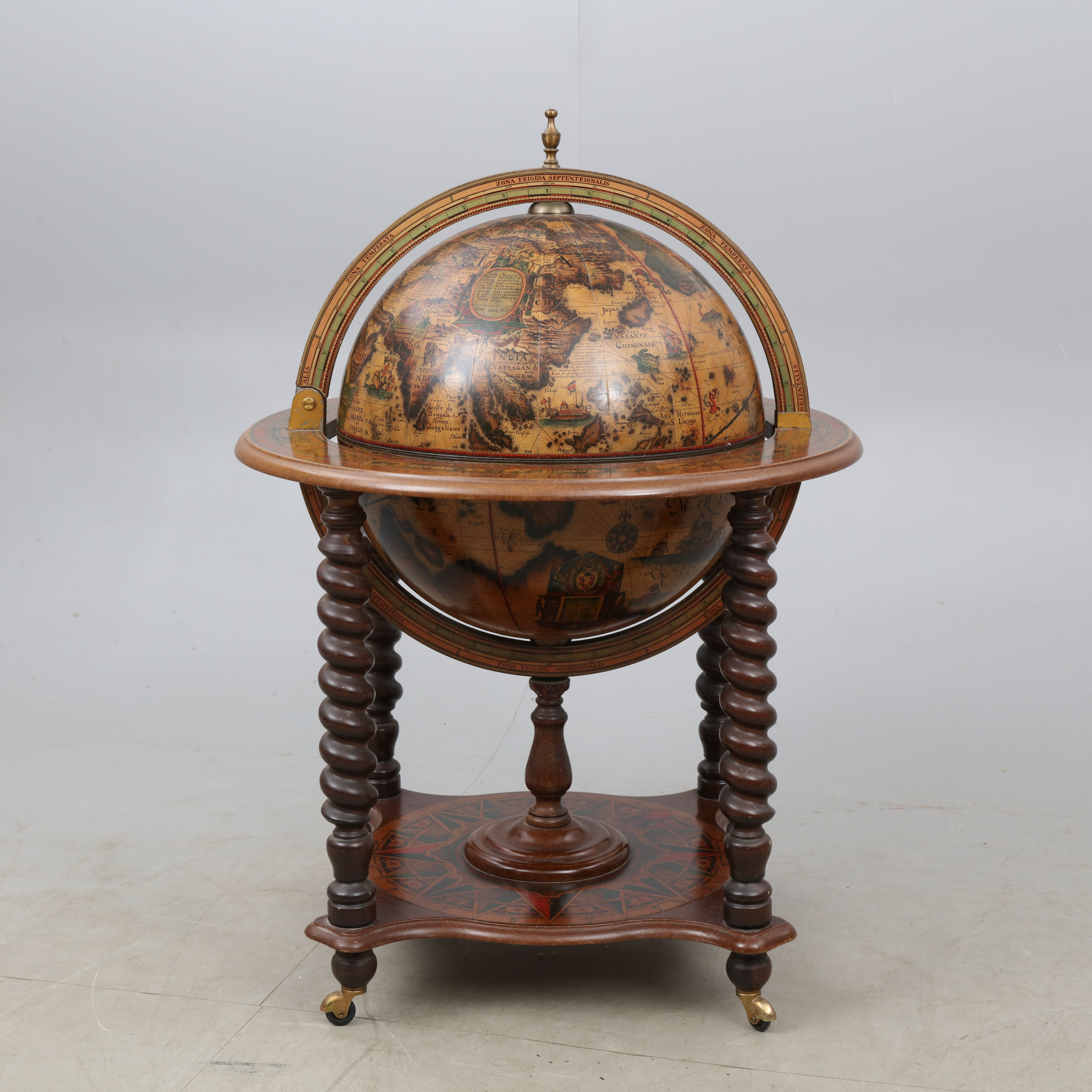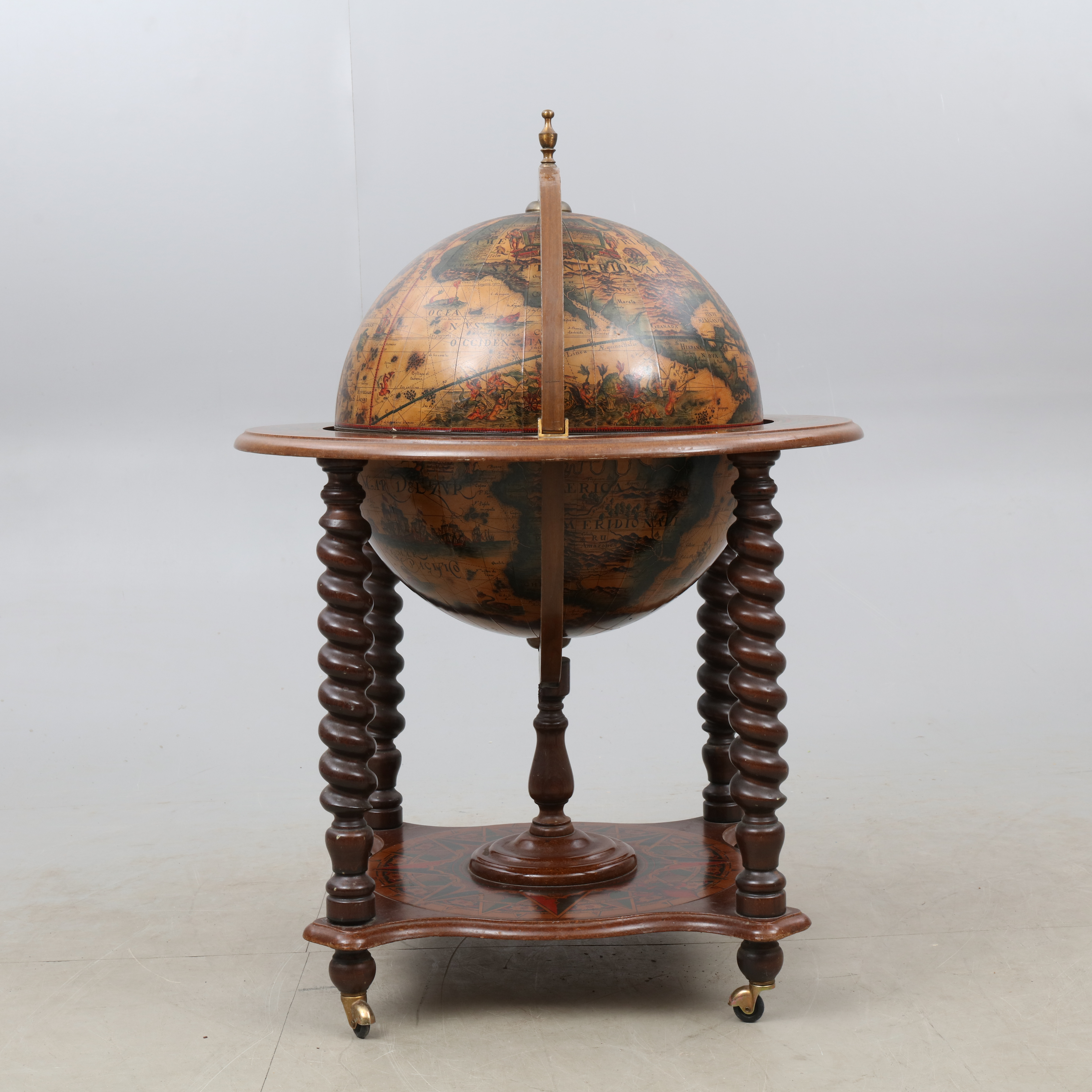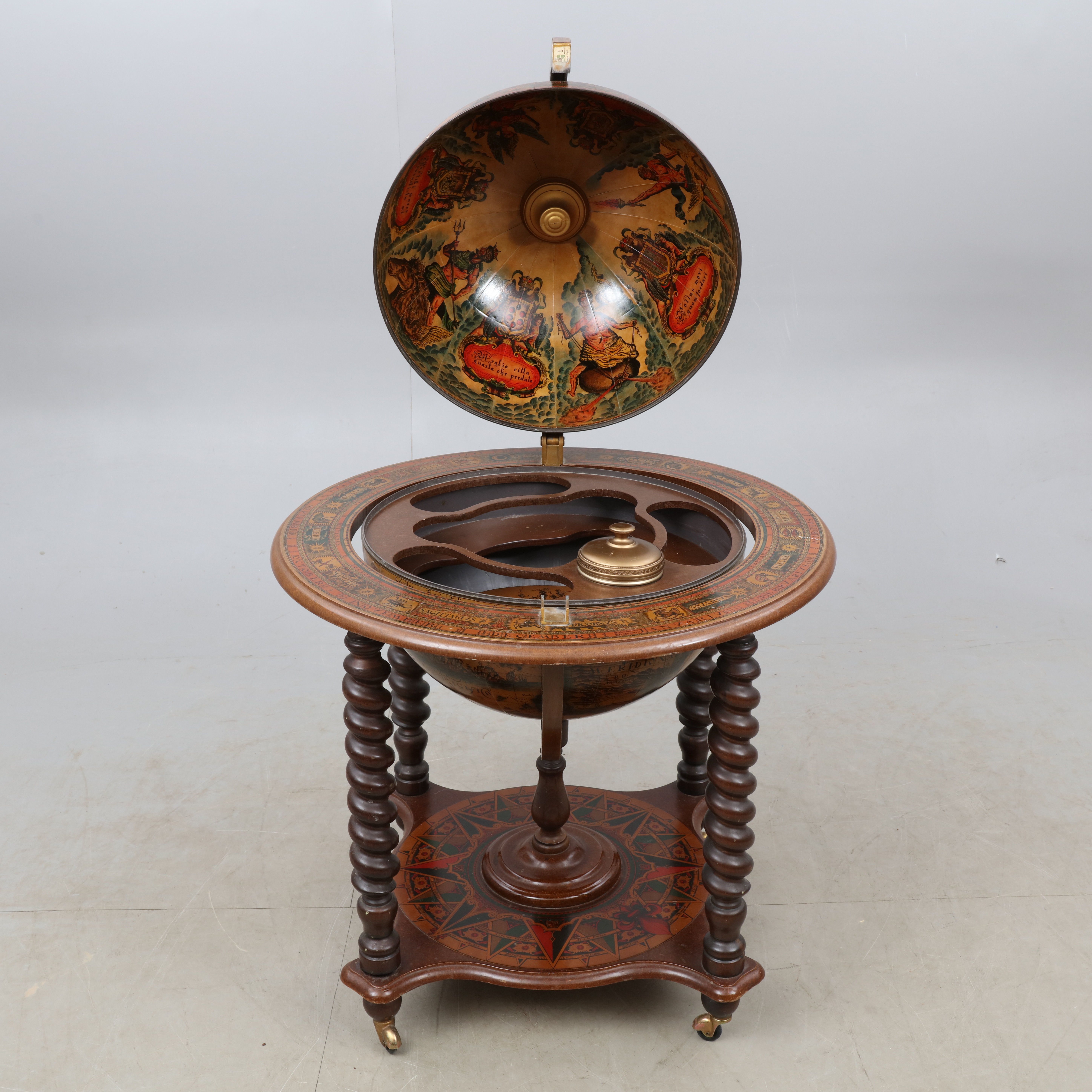 2061666. BARSKÅP, i form af en globus, 20. århundrede.