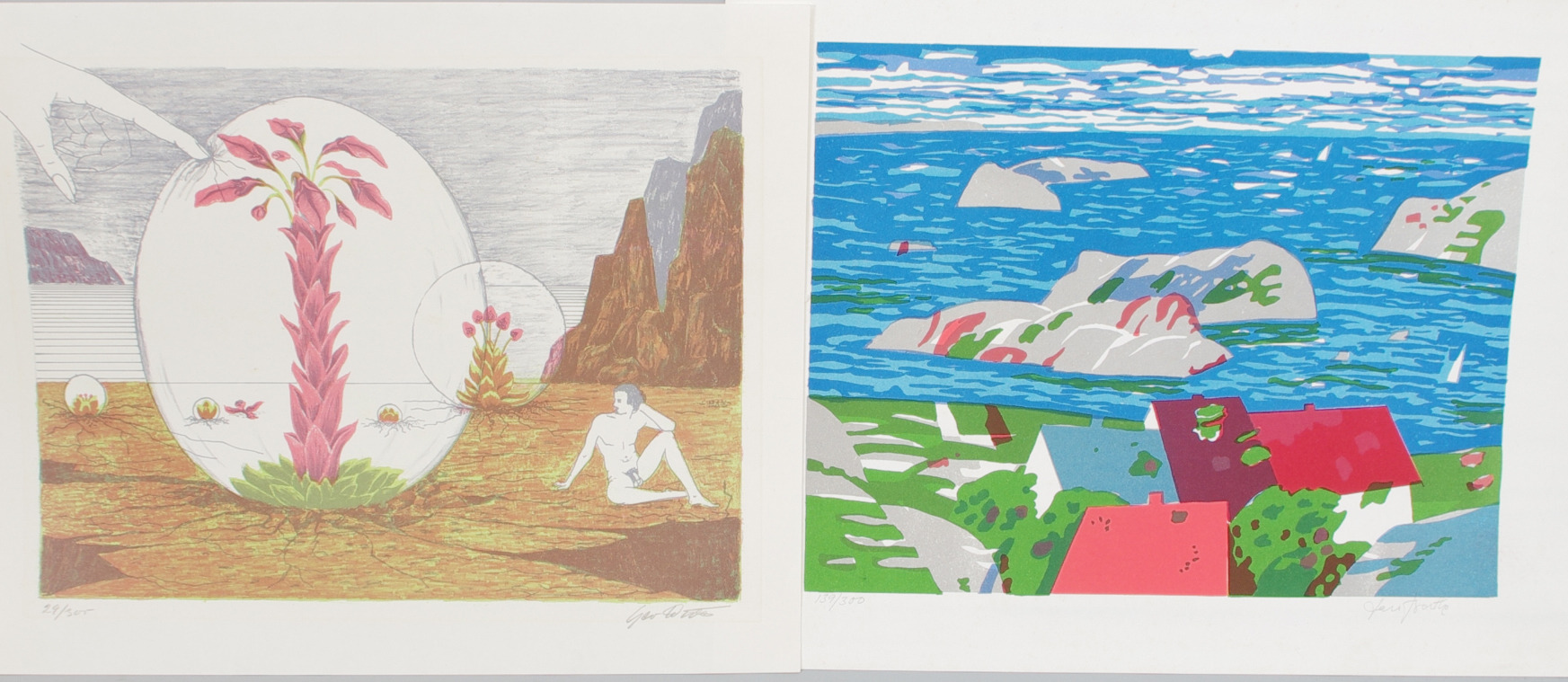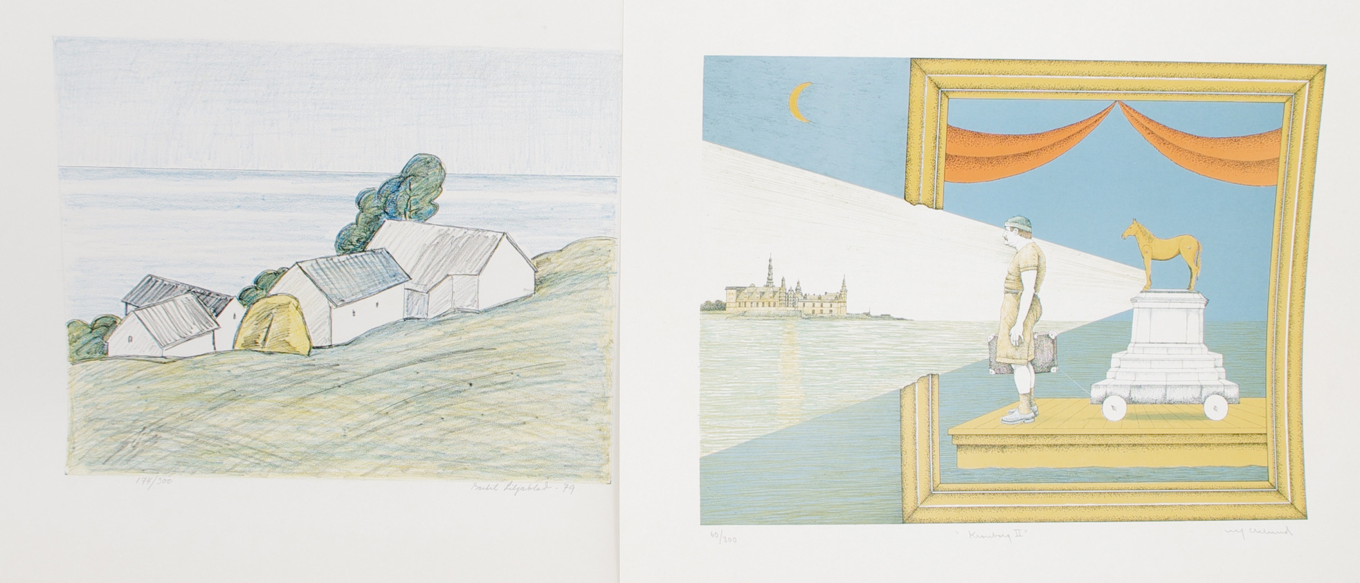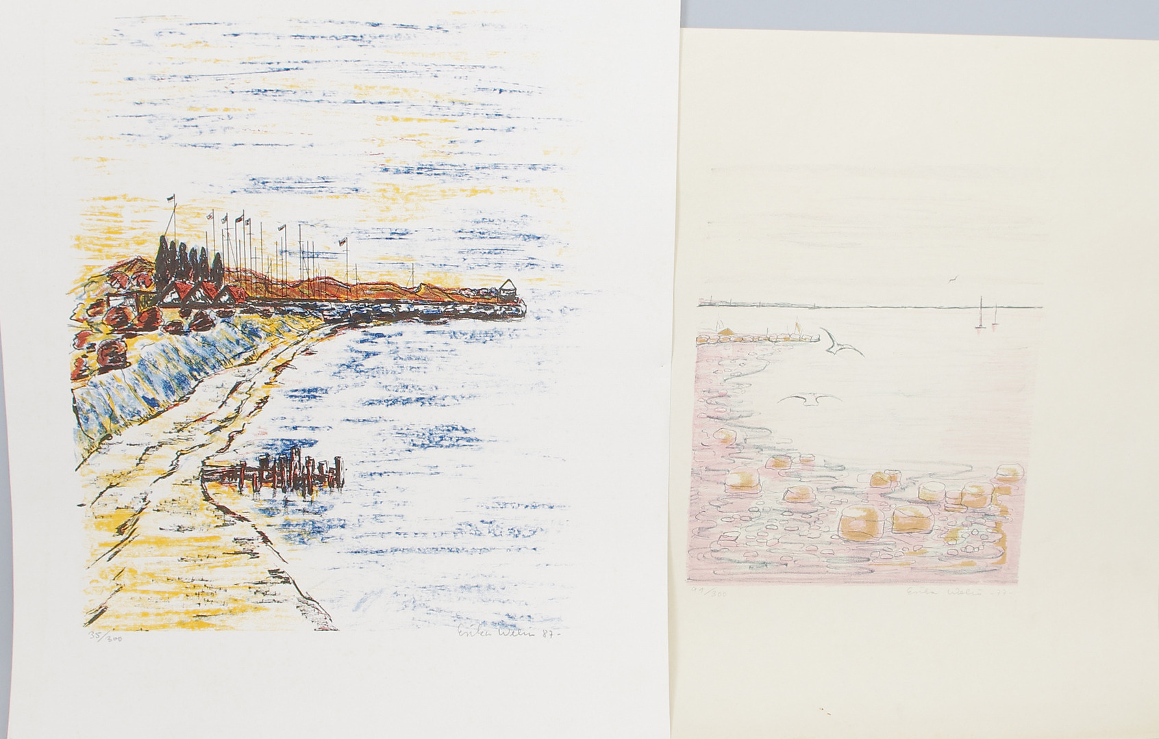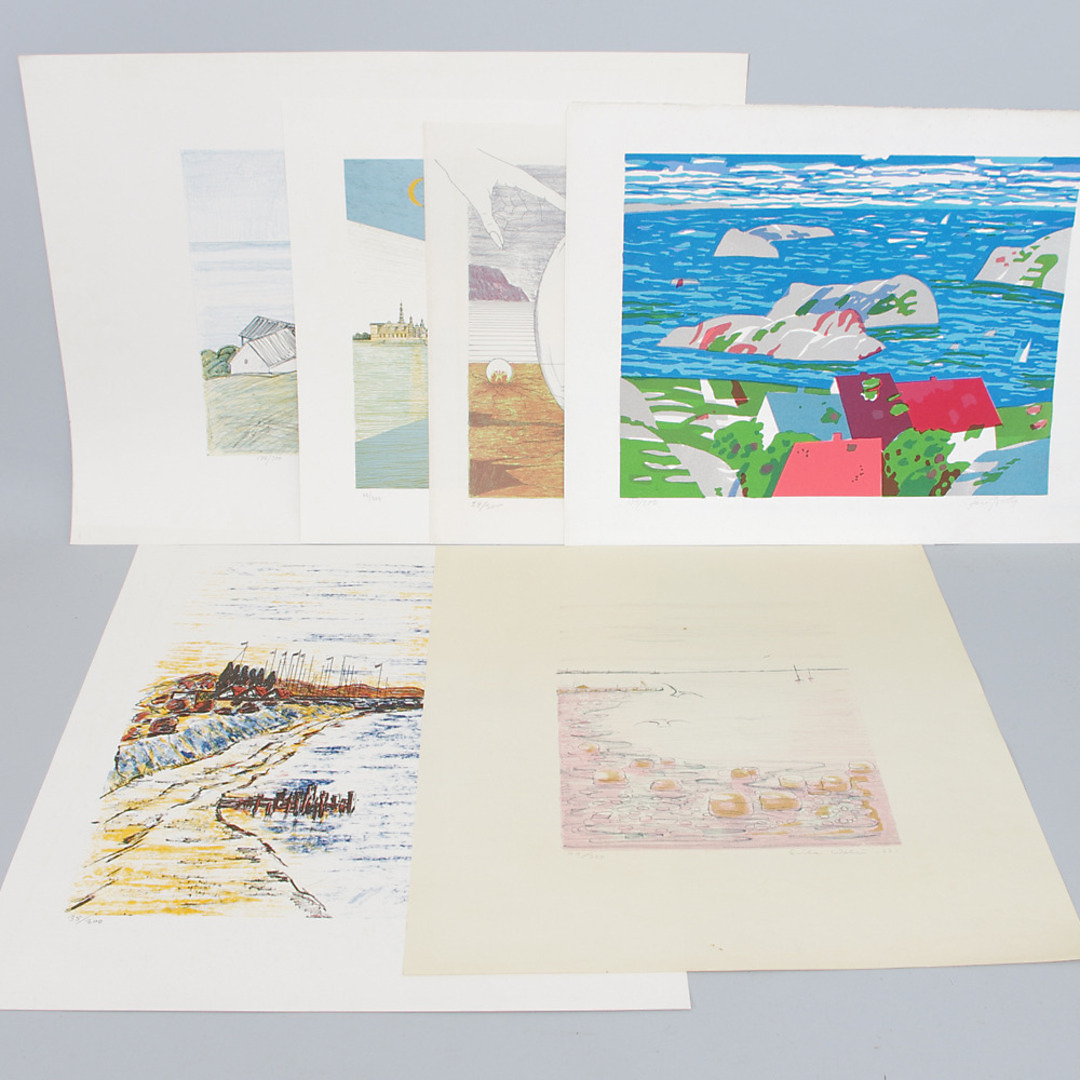 206229. FARVELITOGRAFIER, 6 stk. uindrammet.