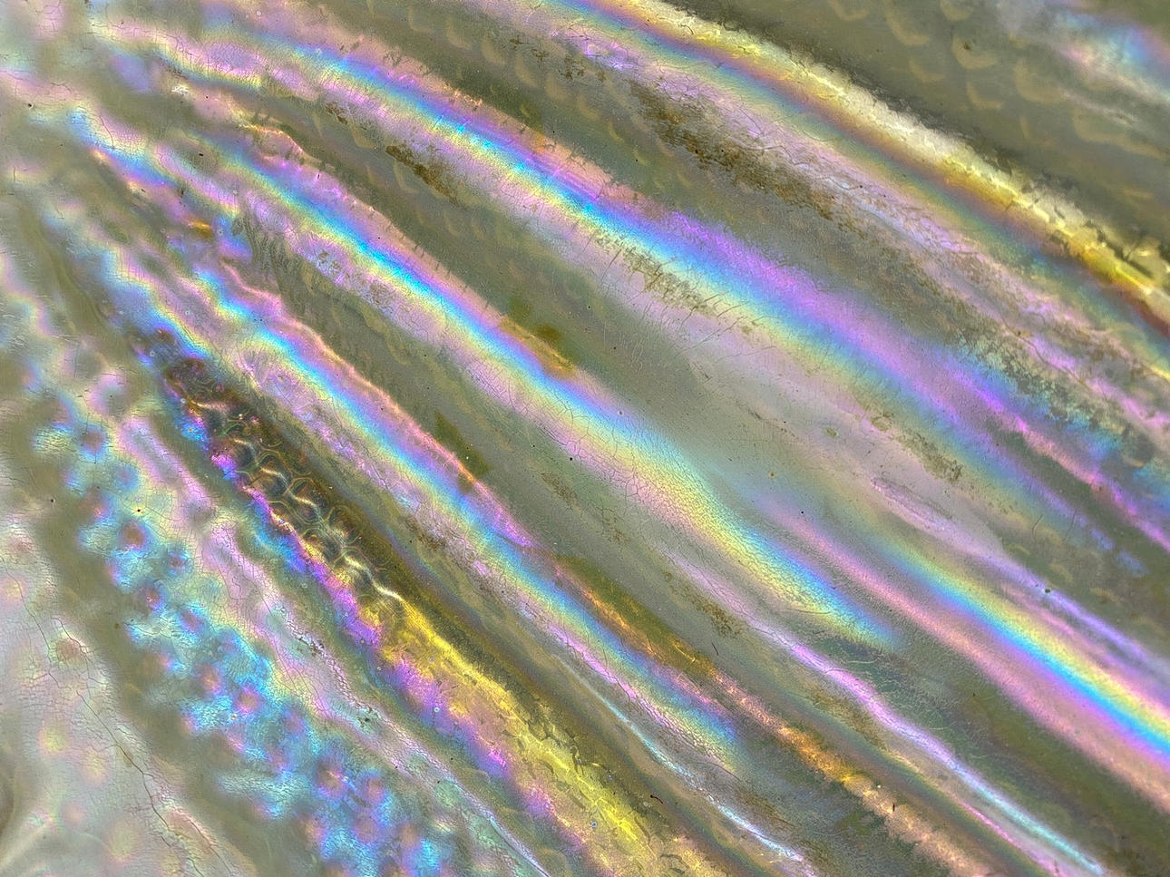 Iriserende skal, glas, mål ca.: H. 7 cm. B. 32 cm. D. 24 cm.