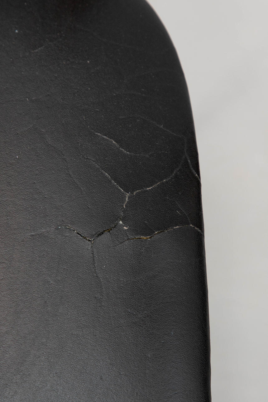Alders- og slidtegn, revner i betrækket på den ene stol.