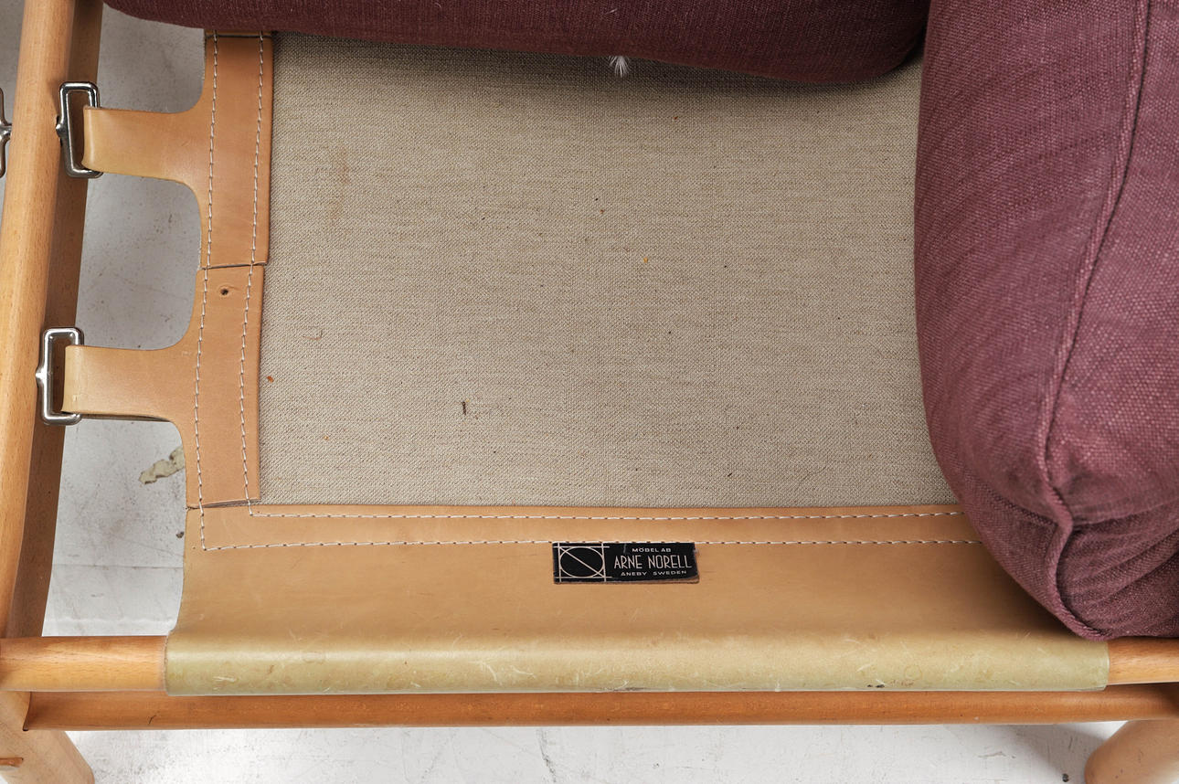 Modellen designet i 1971. Bogstel, kernelæder, lyngfarvede tekstilbeklædte hynder. Etiket mærkning. Sædehøjde ca 35 cm, længde: 150 cm.