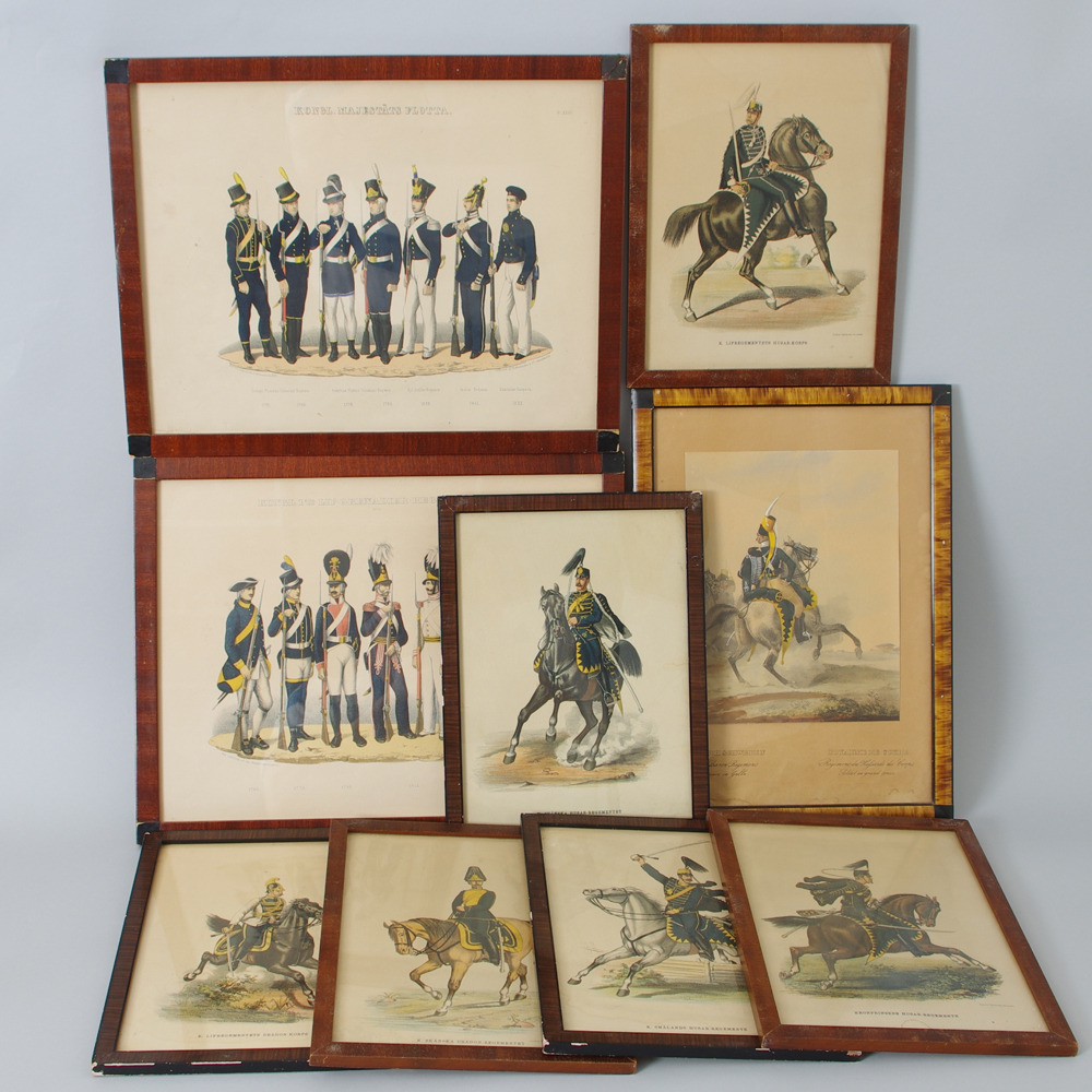 207711. ÆLDRE TRYK, 9 stk., soldater.
