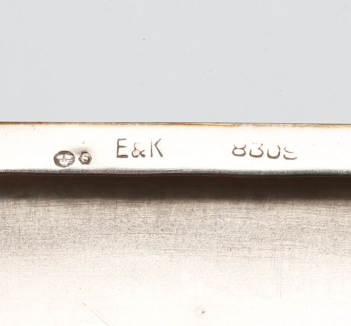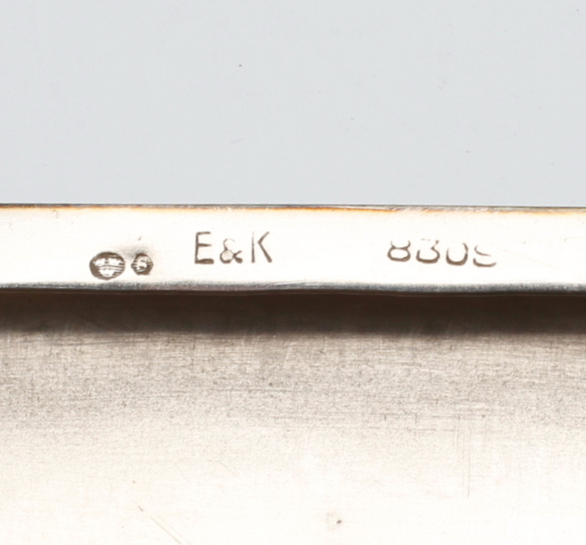 20817. CIGARETETUSKE, sølv, stemplet E&K, vægt 142 gram.