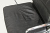 Udkast: 1969. Mellemhøj ryg. Understel og armlæn, forkromet. Med ruller og lænemekanisme, højdejusterbar. Sort læderbetræk. HxBxSh: 84-96x58x40-52cm.