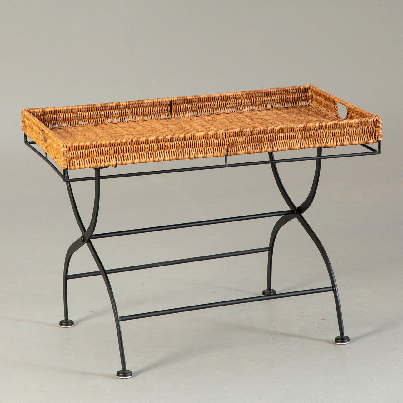 Sammenfoldelig metalramme, malet sort. Bakke med flet. HxBxD: 53x70x45cm.