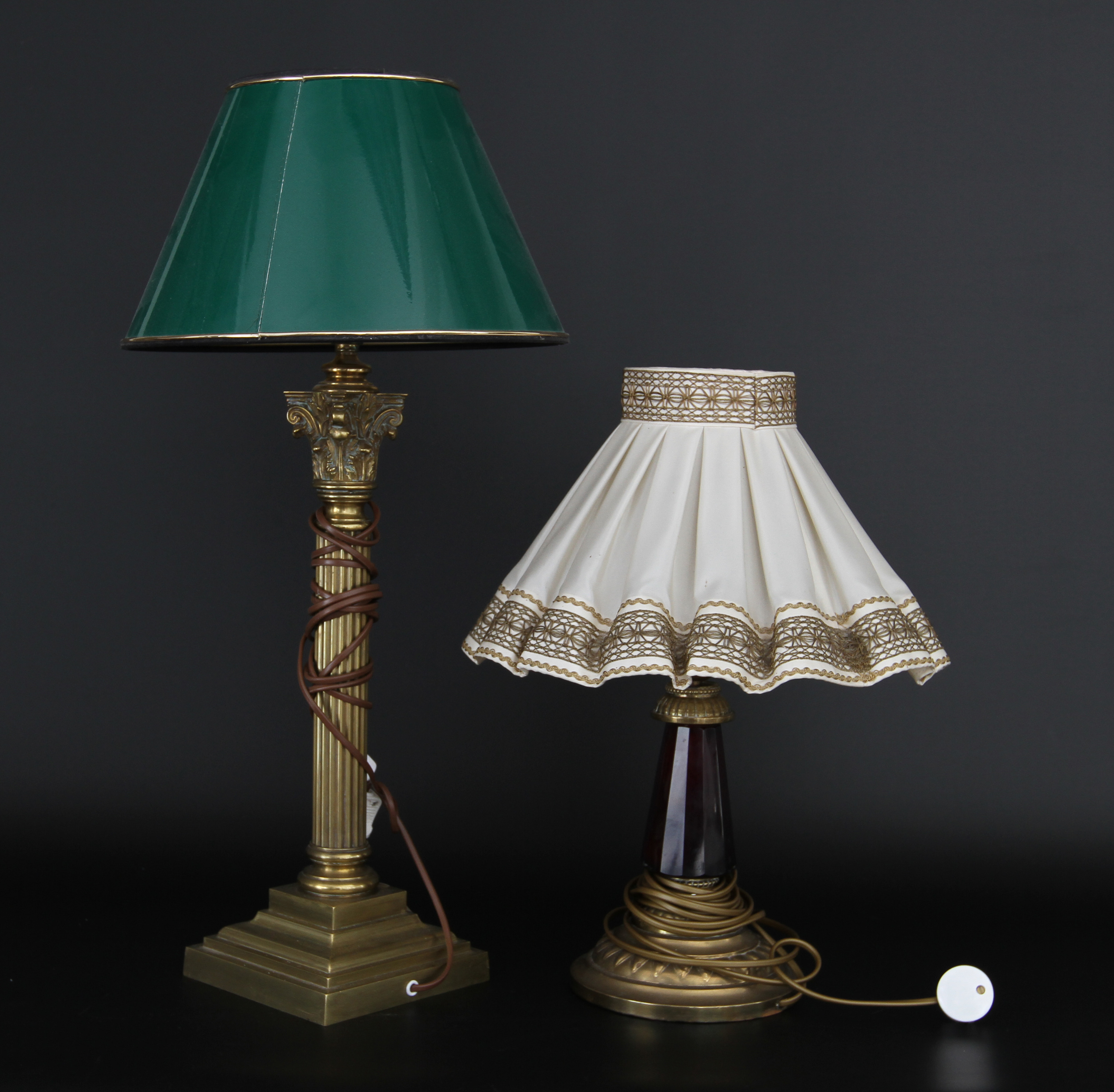 20932. BORDLAMPER, 2 stk. Metal og glas bund.