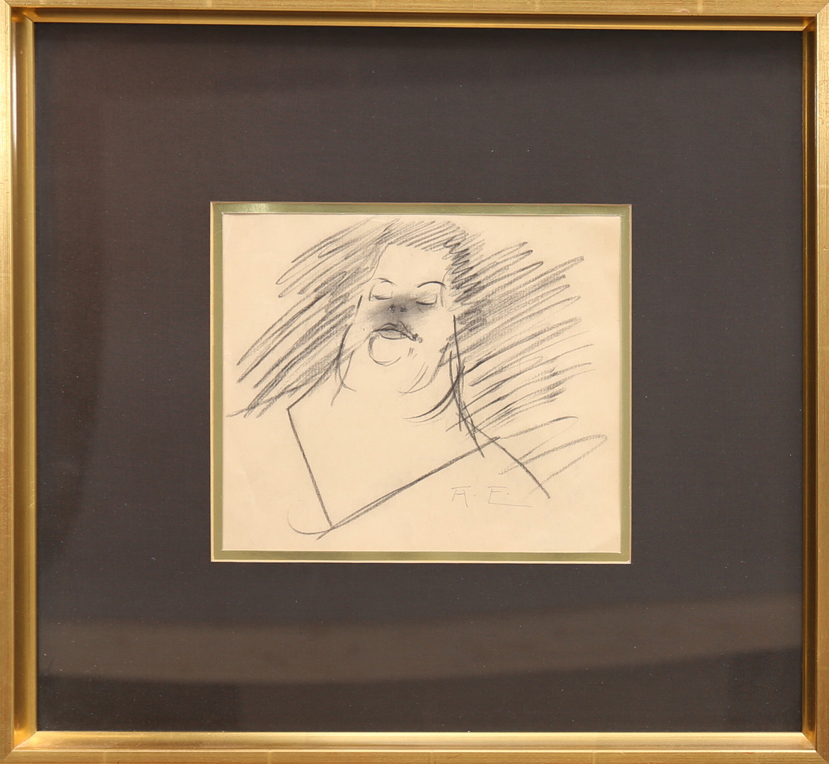 2099996. ALBERT ENGSTRÖM. Kvindeportræt. Kulpen, monogram signeret.