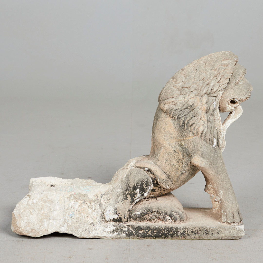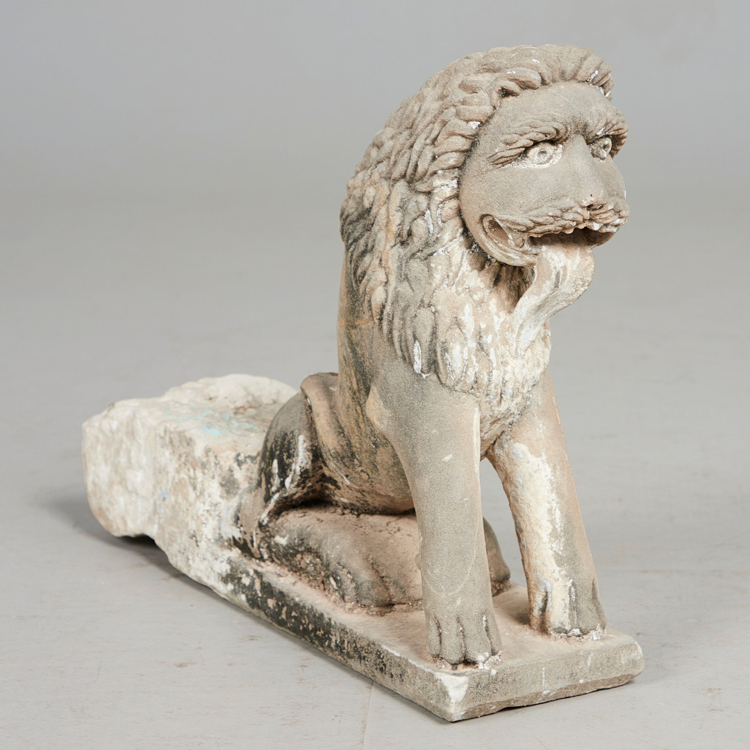 2103065. Skulptur / figur, løve, sandsten, Indien.