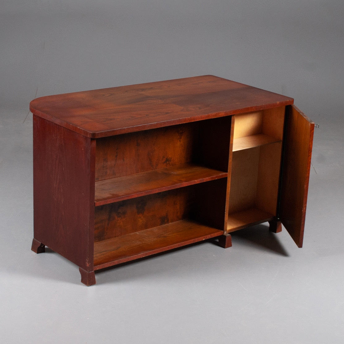 bogskind og spiritusskab på den ene sideskab med opbevaring på den anden side. Længde ca 125 cm, dybde ca 65 cm, højde ca 73 cm.