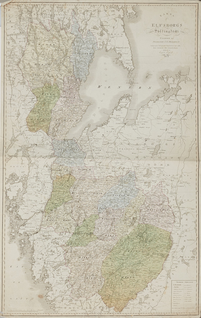 2108661. 2 kort over Älvsborgs fyrstedømme, bl.a. Hermelin.