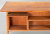 Dansk design, 1950'erne. Teaktræ. Venstre og højre med skuffer, bagside med åbne rum. HxBxD: ca. 73x154x81 cm.