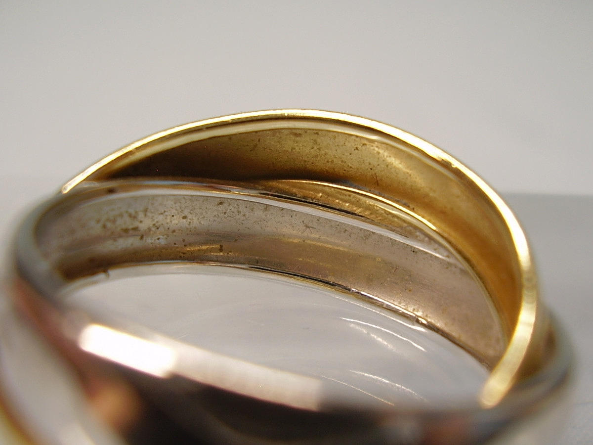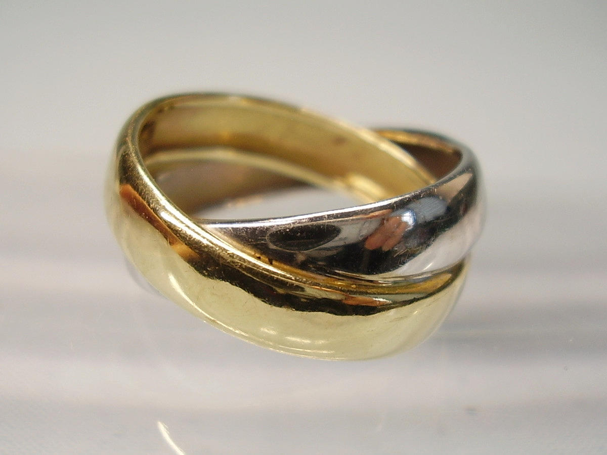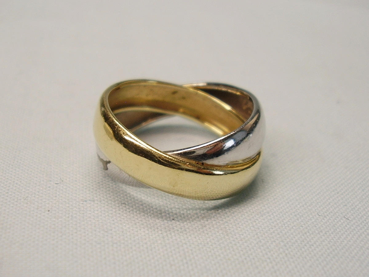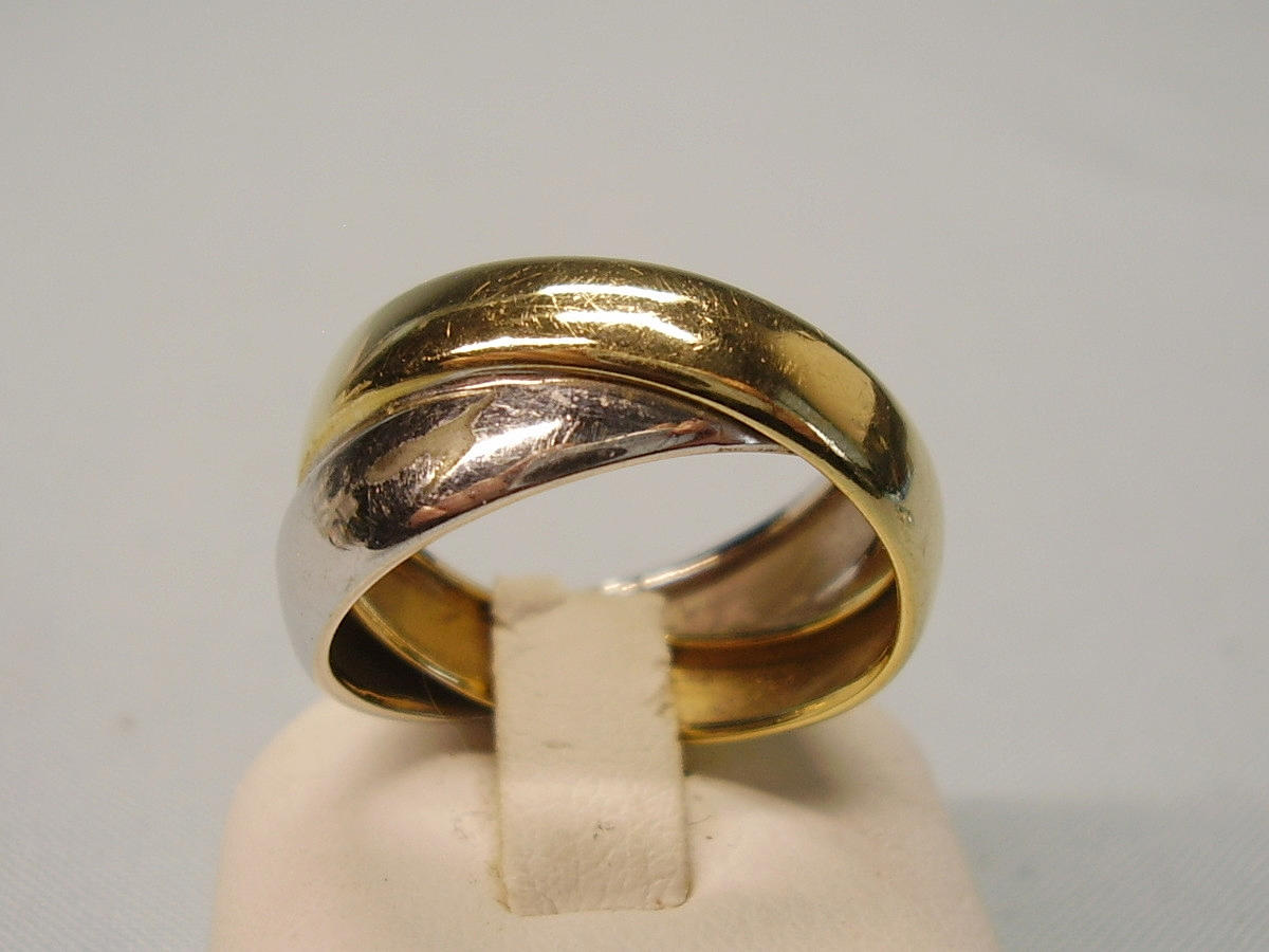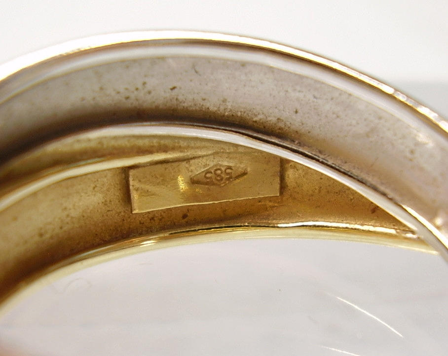 Den elegante ring er lavet af gult guld og hvidguld 585 = 14 karat og stemplet.